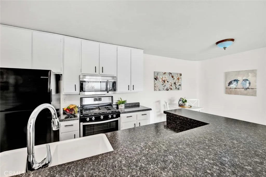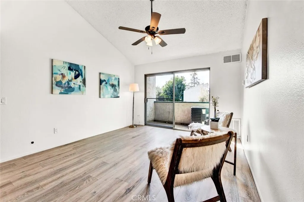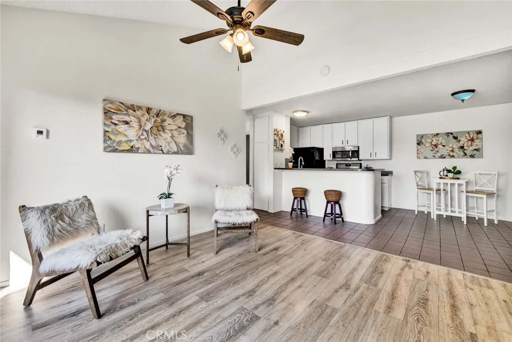 Beautiful, nicely updated upstairs unit in an interior track location which is totally quiet, wonderfully close to one of the spas in the complex and only 100 feet from the oversized pool and entertaining area. Walk-through the inviting front door and see new vinyl plank flooring in both living room and the bedroom, nicely updated kitchen with six burner Stainless steel whirlpool range and an LG stainless steel oversized microwave and a Maytag dishwasher along with an Amana refrigerator and also has a three seater breakfast bar and newer kitchen faucet and a quaint breakfast nook area. The living room is oversized with a lighted ceiling fan and gorgeous vinyl plank flooring, adjoined by a generously sized sitting balcony, perfect for barbecuing and relaxing. Also has a nice storage unit on the balcony and a brand new Goodman HVAC system. Theres a nice linen closet/pantry in the hallway and the bedroom is very spacious 13 x 12 with a lighted ceiling fan and vaulted ceilings, new vinyl plank flooring and a large walk-in closet with organizers. Bathroom is very nice with upgraded lighting fixtures, newer mirror, and fixtures, stone countertop and shower over tub with newer shower wand. 4 Pickleball courts one tennis court and recreational center with full fitness equipment is only steps away!
