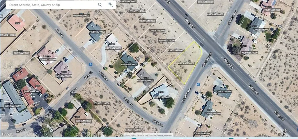 Selling two Commercial Lots (C-1) (According to City of Victorville Online Zoning Maps, Buyer must verify with the City of Victorville) lots are located side by side with APN's 0395-053-19-0000 ( About 13,600 Sq. Ft.) for the corner lot and APN 0395-053-18-0000 (About 9,600. Sq. Ft.) next lot to the north. this information was obtained from public records, but buyer must verify actual measurements. Homes already in the front and the back of these two lots. All Utilities seem to be on the street. There seems to be an alley in the rear to access the second lot. .They both front to Village Dr. they are in the North west corner of Village Dr. and Llanada Ave. According to the title there is no legal access to the lots on Village Dr, but there is access to the side street ( Llanada Ave.) buyer must verify all aspects of the properties including , but not limited to permitted uses, availability and costs to connect to utilities, building permits, etc: Excellent opportunity for a builder or investor., Price includes both lots. Looking for cash sale or seller may finance with $40,000 Down and balance due in 3-4 years @ 8% Interest. . Either way Price is firm. Seller will provide a copy of the title report upon request for buyers review. Easy to find , lots are located right across the street from 16205 Llanada Ave. Victorville, CA 92394 See pictures for an approximate location.