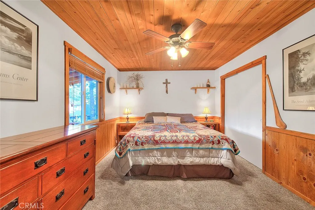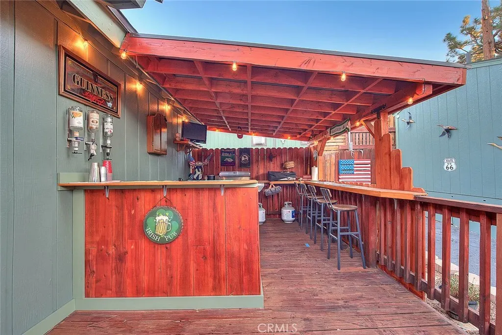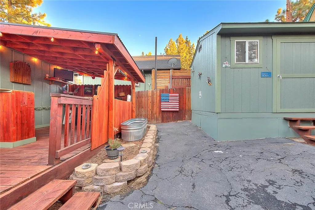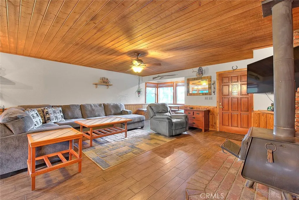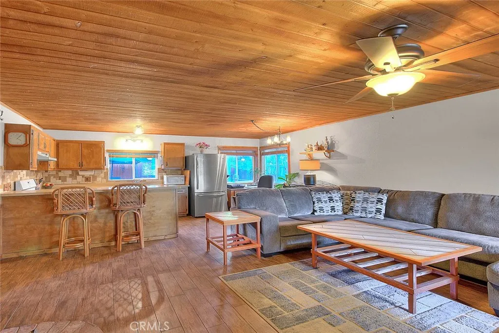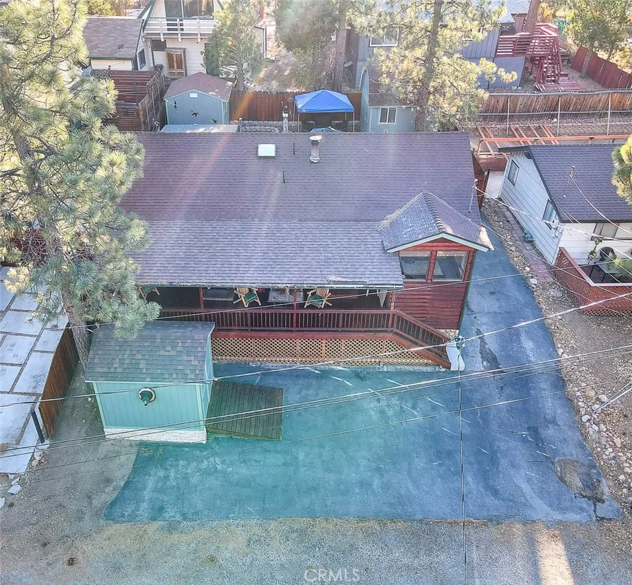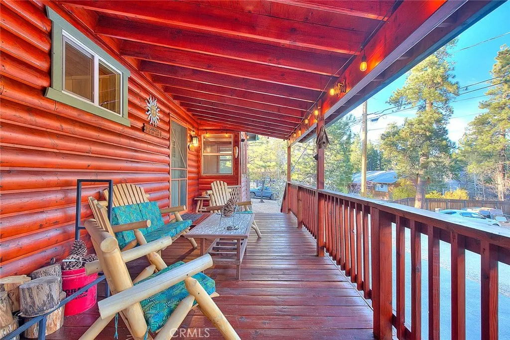 MOTIVATED SELLER: True Big Bear Cabin with 2 large bedrooms and beautiful upgraded bathrooms. This is a must-see, a true jewel. An inviting covered porch welcomes you home. Inside, the open-concept family and dining room centers around a wood-burning stoveperfect for cozy gatherings and game days. The adjacent galley kitchen is warm and functional, ideal after a day on the slopes or lake. The main suite features a large closet and a beautifully renovated bathroom with an open shower and refined tile and stone finishes. The guest bedroom offers comfort and storage, while the newly updated guest bath features modern stonework and a walk-in shower. A spacious utility/mud room adds convenience with laundry and extra storage. Out back, the expansive yard is made for entertainingwith a sunny porch, covered entertaining space, and room to host. Two of the three outbuildings sit in the rear yard, including one with electricityideal as a workshop, office, or creative retreat. With secure storage for gearbikes, skis, sleds, ATVsand parking for 35 vehicles plus RV space, this home is designed for full-time living or weekend escapes.