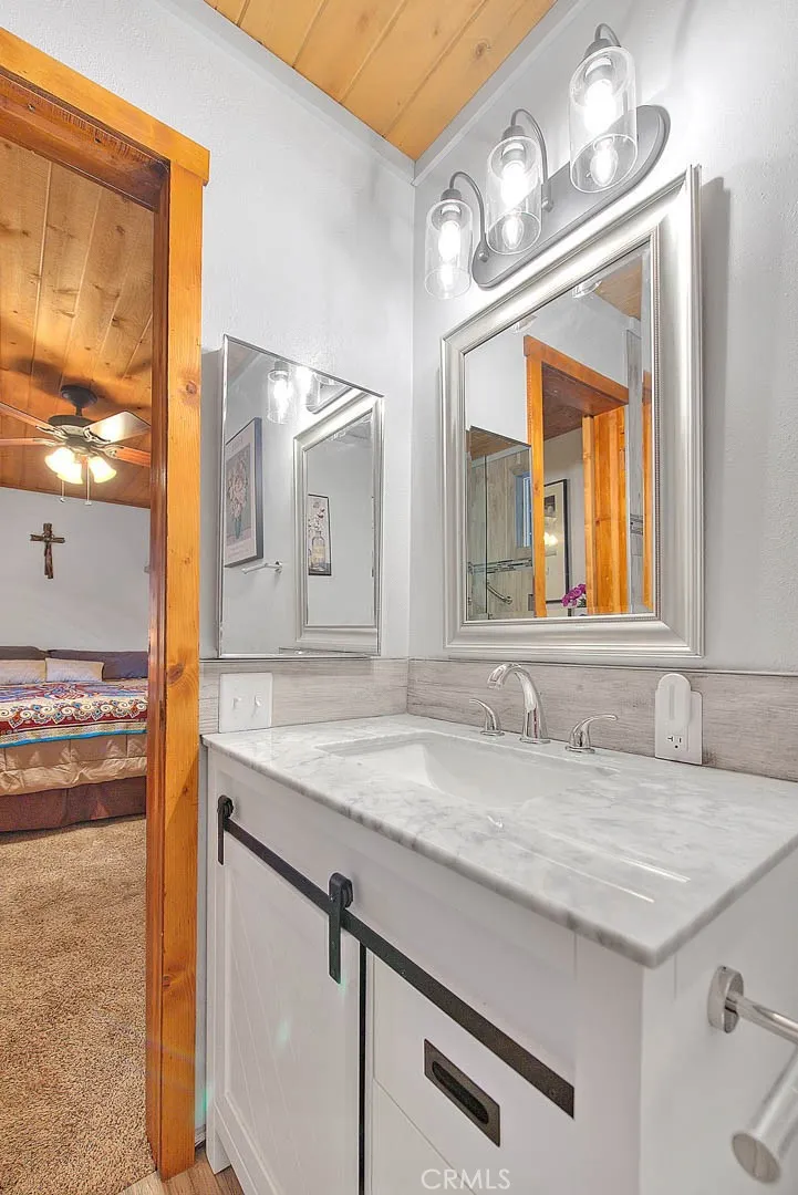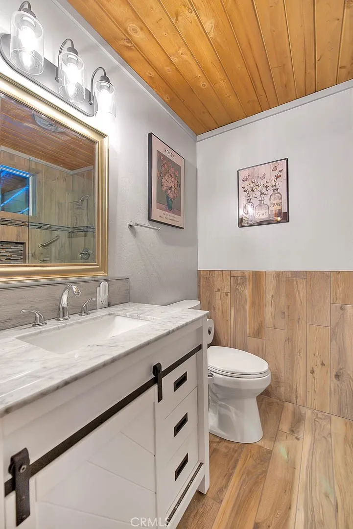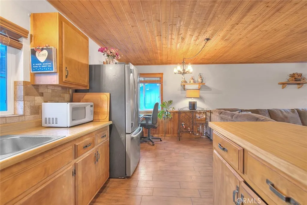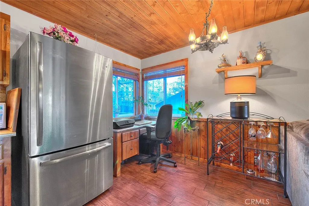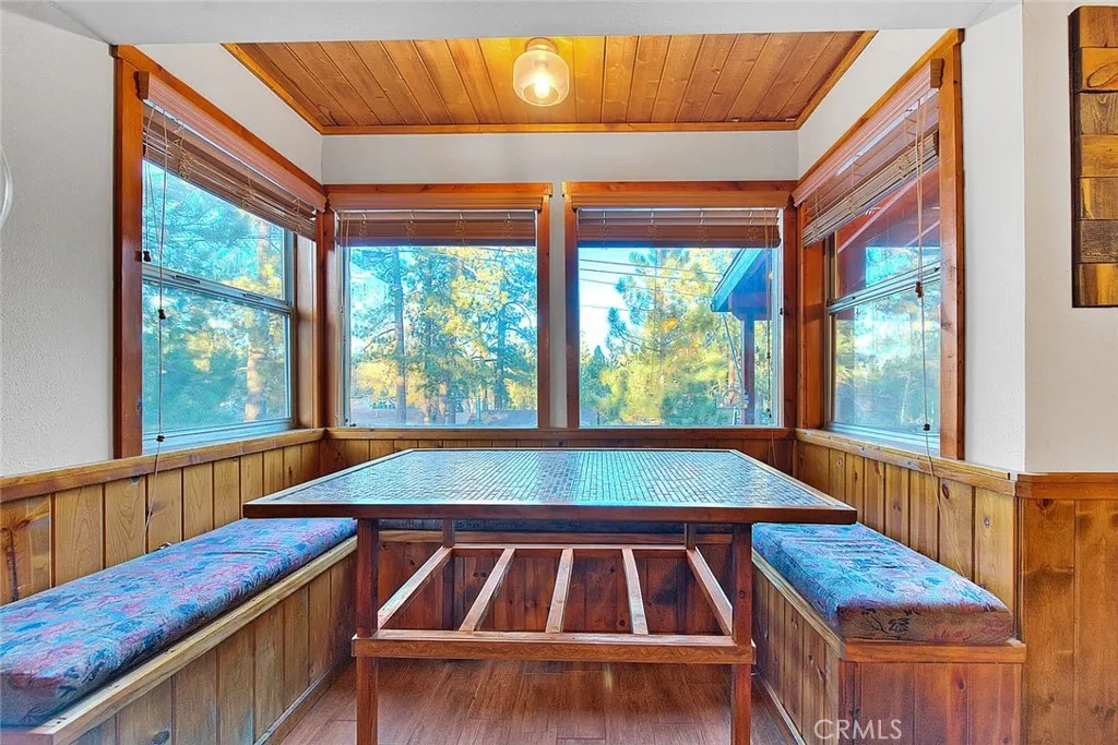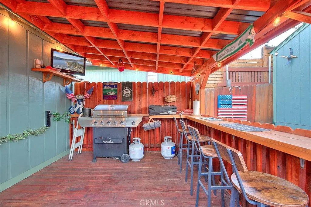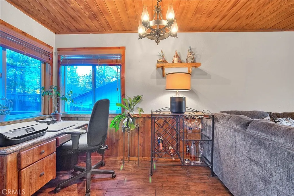 MOTIVATED SELLER: True Big Bear Cabin with 2 large bedrooms and beautiful upgraded bathrooms. This is a must-see, a true jewel. An inviting covered porch welcomes you home. Inside, the open-concept family and dining room centers around a wood-burning stoveperfect for cozy gatherings and game days. The adjacent galley kitchen is warm and functional, ideal after a day on the slopes or lake. The main suite features a large closet and a beautifully renovated bathroom with an open shower and refined tile and stone finishes. The guest bedroom offers comfort and storage, while the newly updated guest bath features modern stonework and a walk-in shower. A spacious utility/mud room adds convenience with laundry and extra storage. Out back, the expansive yard is made for entertainingwith a sunny porch, covered entertaining space, and room to host. Two of the three outbuildings sit in the rear yard, including one with electricityideal as a workshop, office, or creative retreat. With secure storage for gearbikes, skis, sleds, ATVsand parking for 35 vehicles plus RV space, this home is designed for full-time living or weekend escapes.