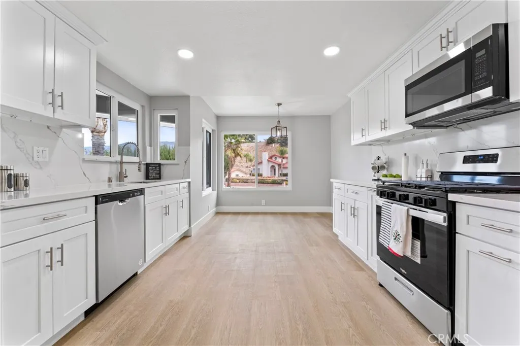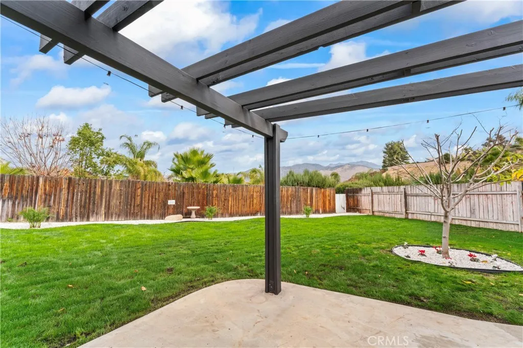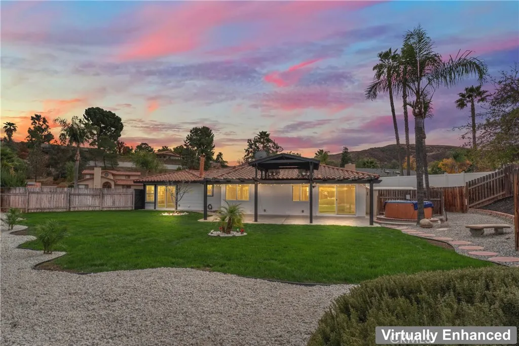 WOW Take a look at this Spanish Style Home in a nice neighborhood in the city of Hemet with Spectacular Views of the Valley and the orchards trees. As you approach to the home you will be welcoming with an inviting porch. Then turn the key and enter to a big family room and a formal dining room. The Gorgeous Kitchen is the centerpiece of the home with quartz countertops and the Quartz splash back give a sense of elegance. The Home boost 1,654 sq ft plus extra sq ft with the enclosed covered patio, that can easily be use as a hobby room, exercise room, office or a bonus room. This home offers 3 spacious bedrooms with a huge walking closed in the master suite. A beautiful on suite master bath with walking shower continuing the elegance as the kitchen with double vanity. Step into your private back yard and enjoy the above ground Jacuzzi to relax on your free days. Enjoy the outdoor to your best overlooking at the foothills and trails nearby. There is two good size sheds to store your tools. RV parking and extra wide driveway for all your vehicles. If you are looking for comfort living this is it. Come and preview this home before is too late.
