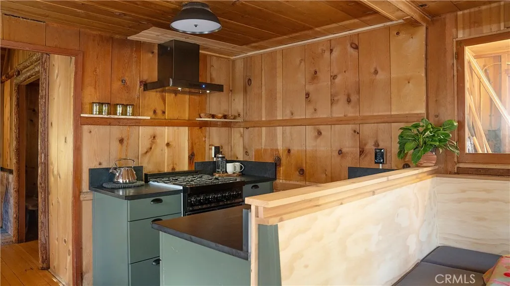 GREAT OPPORTUNITY TO OWN STRAWBERRY CREEK PROPERTY! (This fixer - Lots of updates already done, but room for a continued project for new owners - This is an almost 100 year old cabin ) 1930's Idyllwild original single pane wood cabin with modern rustic, farmhouse and designer finishes throughout and fully furnished with modern luxury brands. Including new reconfigured and remodeled kitchen, remodeled bathroom, new living room with custom masonry and wood burning stove, all new appliances throughout, updated electrical, new lighting fixtures throughout, ceiling fan, refinished original hardwood floors throughout, vintage pine paneling and a dramatic open-truss ceiling design, wrap around deck with creek views and secluded location at the back of the property. New septic tank.