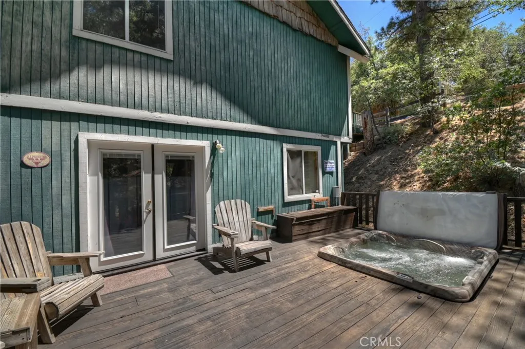 Welcome to your secluded retreat in the heart of Big Bear Lake! This charming 3 bedroom, 2 bathroom home boasts 1434 sq ft of living space on a spacious 13110 sq ft lot, surrounded by towering pine trees. Features of this home include vaulted ceilings and a cozy stone fireplace in the living room, a spacious deck for outdoor entertaining, an open kitchen complete with a breakfast bar, and your own private sledding hill. The master bedroom has an ensuite bathroom and a private balcony with stunning views of the surrounding forest and a spa. Walking distance to Bear Mountain ski resort, and a quick drive to all the attractions Big Bear has to offer, this home is perfectly situated for year-round enjoyment. Whether you're looking for a peaceful retreat to escape the city, or a fun-filled vacation home for family and friends, this property has it all. With plenty of outdoor activities nearby, such as hiking, mountain biking, fishing, and skiing, you'll never run out of things to do. Enjoy the convenience of being minutes away from the golf course, zoo, the lake, and the bustling shops and restaurants in The Village. This move-in ready home and comes fully furnished, making it the perfect getaway or full-time residence. Don't miss out on this rare opportunity to own your own private oasis in the mountains of Big Bear Lake. Buyer and buyers agent solely responsible for verifying the accuracy of any and all information provided.