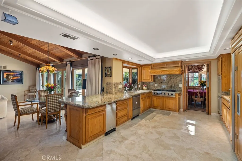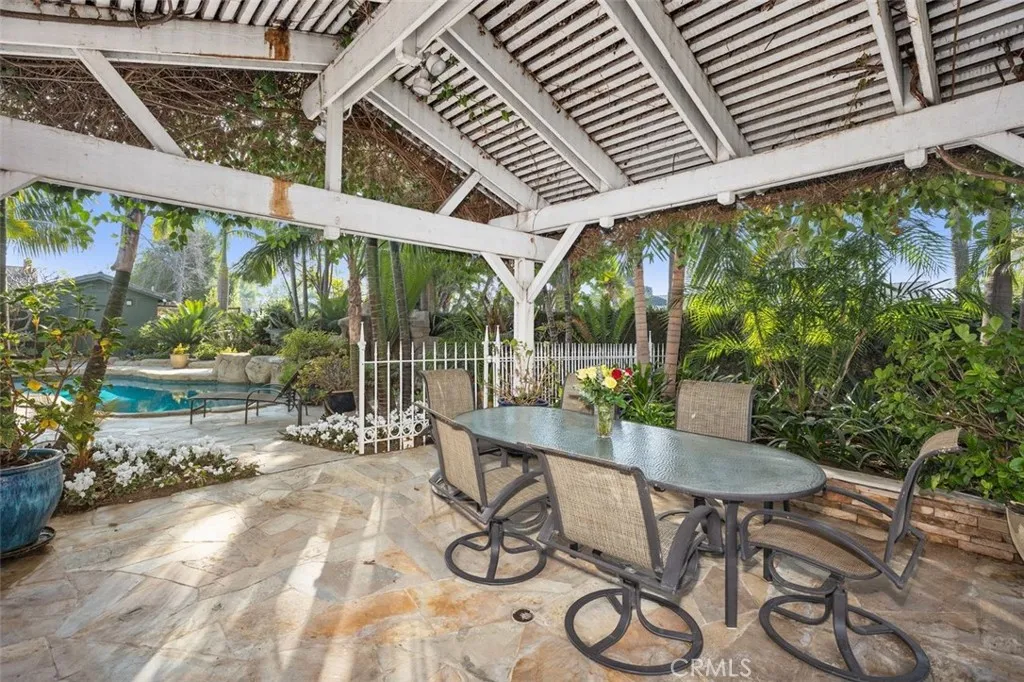 Welcome to this Exquisite Villa Park Luxury Estate, located in a sought-after neighborhood with award winning schools. This sprawling home offers perfect blend of luxurious living & resort-style amenities, nestled on a private 20,000+ lot with lush, mature landscaping & breathtaking curb appeal. 6 bedrooms, 4 baths , over 4,426 sq.ft (Title co.) measures larger 4530 sq.ft. (by owner) of living space, a private guest house(6th bedroom), sparkling pool with waterfall and slide (new pool heater )and a jacuzzi for relaxation, elegant grand living room, formal dining room, the large family room and primary bedroom have garden views, gourmet chef's kitchen with high-end appliances (Viking cooktop, Wolf Double Convection Oven, Sub-zero refrigerator, FIsher-Paykal dishwasher),separate library with custom cabinetry, a loft (additional family room)with custom cabinetry and surround sound ,Travertine and Marble Flooring throughout, Custom Cabinetry in Kitchen, Family Room and Library, New HVAC system with separate zones for the bedrooms, Surround sound & water purification system, Multiple Entertaining spaces, Viking BBQ with refrigerator, cooktop and sink in outdoor entertainment area. It also has 2 separate enclosed vegetable garden areas with raised beds. This beautifully appointed home offers everything for luxury living, from its spacious, open concept areas to its meticulously designed details. Whether you're hosting grand events or enjoying family time, this home provides an ideal setting for both. Located in a prestigious area and its tropical-like backyards with collectors Pa