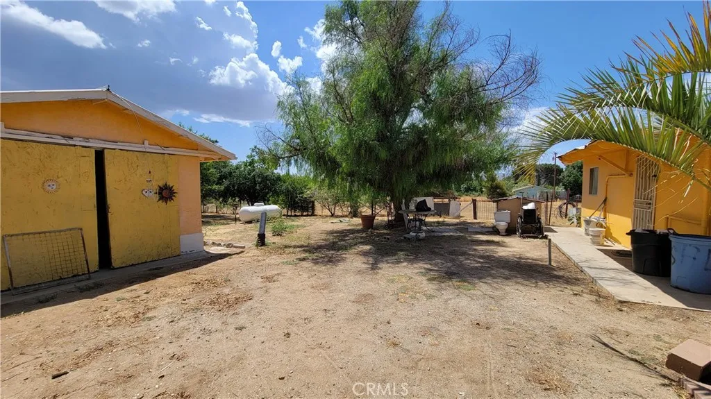 Great Location close to town and schools. This home was built in 2006 and is in great condition with little wear and minimal use over time. It has 3 bedrooms and 2 bathrooms with the Main bedroom connecting to a spacious bathroom with corner garden tub and separate shower. The living room has a fireplace, with open concept living space and a large kitchen connected to a dining area. The living areas have vinyl flooring. Separate laundry room off the kitchen. The dining area has a sliding glass door which accesses a patio behind the home. Just steps away from the back patio is small barn and a also separate building with a large room and a bathroom that would be a great space for a guest casita and many other possibilities. The property is fenced and cross fenced with room for horses, chickens and more. The home is surrounded by shade and fruit trees making for a great space for outside enjoyment, parties, gardens and more. Concrete driveway & walkways surround the home. What a great opportunity to own a lovely home with so much more!!
