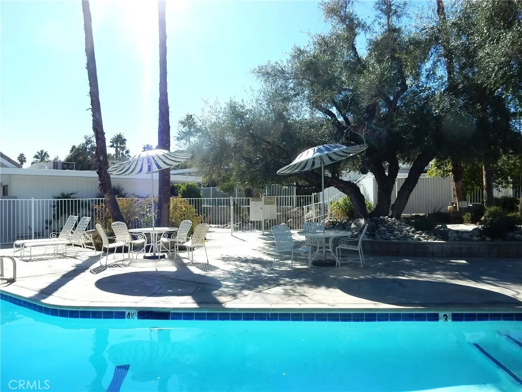 This Mid-Century Modern home is waiting for you to update, customize and decorate to your taste! This 32-unit Chalet is in the heart of Rancho Mirage and the much-desired Magnesia Falls Cove area. It was designed by renowned Architect Barry B. Berkus. Chalet Palms has been featured in Modernism books and has been on the Modernism tours multiple times. This much desired 2 bedroom, 2 bath home has one of the best views of the Northern Mountains and has a large greenbelt area with tall palm trees just outside the unit. The Chalet is a great place to live year-round or the perfect vacation getaway. Pocket doors open to the second bedroom with a pull-down wall bed, or this can also be used as an expanded living area. The home features 2 half baths with a shower between them to be utilized by either bedroom or your guest. You have two good sized patio areas, one with the great mountain and greenbelt views and the other is private just off your kitchen and the main bedroom slider for a great outdoor dining area. Just beyond the greenbelt is a short walk to the beautifully landscaped community pool, spa, mailboxes, 2 laundry rooms and more large palm trees and greenbelt areas. Your condo includes a reserved close carport space for your vehicle. A short walk will take you to the RIVER for shopping, dining and entertainment.