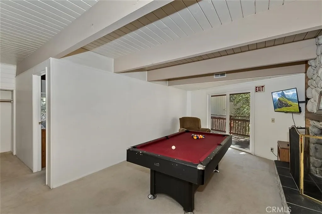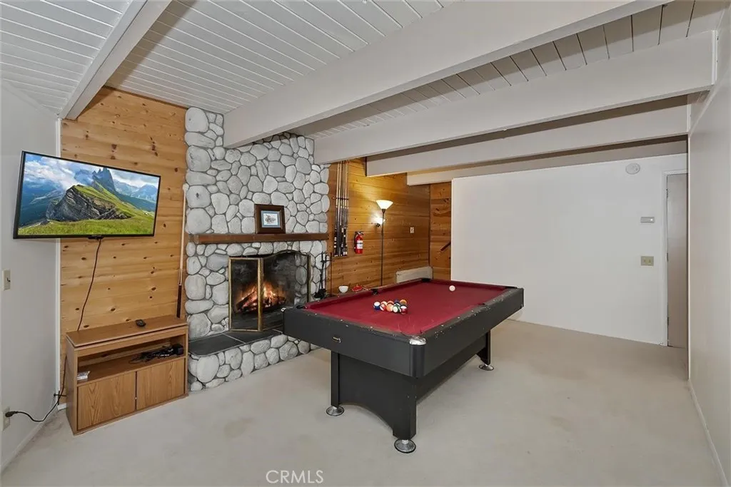 Classic Lake Arrowhead "Prow Front" cabin with "lake rights" to private Lake Arrowhead. Main floor living area is perfect for entertaining with an open floorplan featuring a wall of windows and slider out to wrap around deck overlooking Grass Valley Lake area and ridgeline views. Living room has a rock fireplace for those cool mountain evenings. Nicely updated kitchen with quartz counters, breakfast bar with a live edge wood slab counter top and stainless appliances with an adjacent dining area. Main level also has two good sized bedrooms and full bathroom. Upstairs you will find a huge loft set up as the primary bedroom with split A/C unit and private bathroom. Downstairs is a separate family room with another rock fireplace, pool table and slider out to another large deck. Also downstairs are two bunk rooms, laundry area and another bathroom. This could be a complete package with a multiple dock slip and boat available for additional $$.