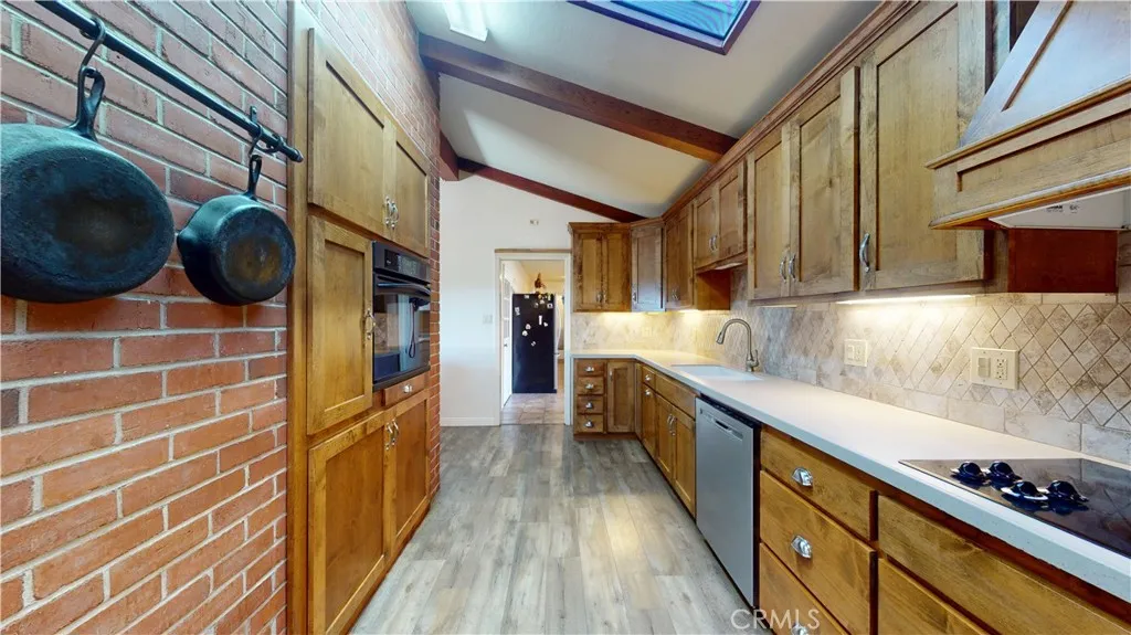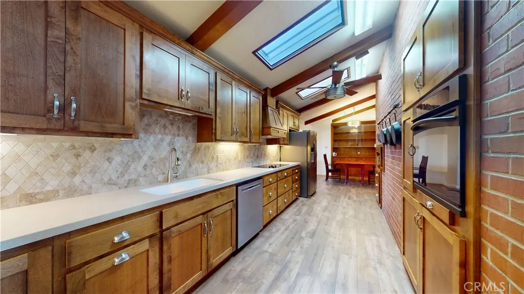 This close to city country home is bursting with amenities! First the spacious 3 br 2 ba home features laminate floors, Vaulted exposed beam living room with floor to ceiling brick fireplace. The vintage design of the home is tastefully complimented with an upgraded kitchen with exquisite tile backsplash. Very spacious laundry/storage room with built in cabinets. Skylights in the kitchen provide natural soft lighting. Step through the kitchen/dining area into a huge 13x25 fully enclosed room with a gas fireplace, perfect for a game room, office or whatever you may need. Ceiling fans throughout and an abundance of built in cabinets. Covered front porch overlooks the vast front yard and mature trees. Sitting on the over 3/4 acre lot is not only the home but a large 25x29 shop complete with 220v and a large metal carport next to the shop. Attached to the shop is a wonderful fully self contained in law quarters. A fully self contained 1 br, 1 ba ADU! All this with room for your boat/RV parking needs. The home and ADU are equipped with a water softener and nitrate filtration system.