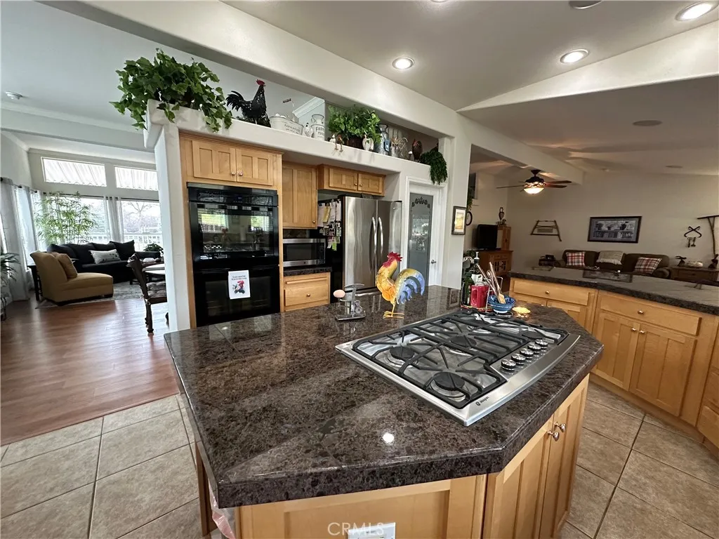This beautiful home features 3 bedrooms and 2 baths. Wide open spaces with high 10 ceilings and extensive architectural detailing accent the interior living spaces. Luxury, style and convenience define the kitchen and master suite. The large circular kitchen with expansive windows with spectacular views of an open area. Kitchen includes built in ovens, propane cooktop, an instant hot water system and a large walk in pantry. Home has dual heating and air conditioning, along with a water filtration through out. Attached garage is 20x24, with an additional carport on the side. Side yard in concrete with approx. 10x10 storage/workshop. This is a MUST SEE home! Check with Park Management for Space monthly space rent.