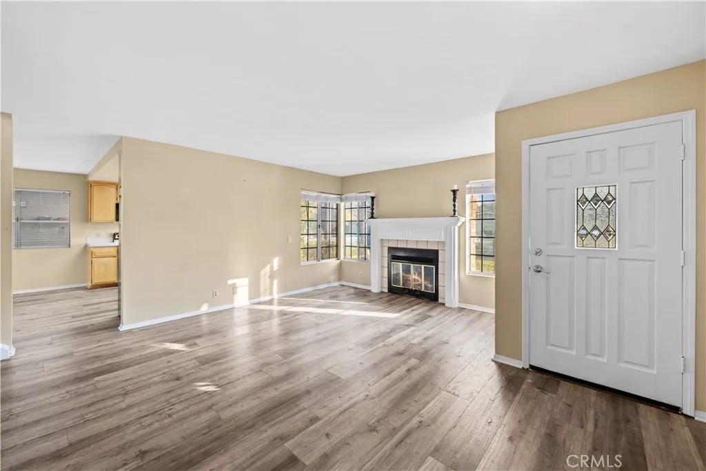 Adorable Pool Home with a huge flat backyard with 3 bedrooms, 2 1/2 baths, loft, living room with fireplace, & almost 1700 square feet across the street from the lake. Cozy living room featuring a wood-burning fireplace with mantel, open kitchen with newly painted white cabinets, stainless steel fridge & dishwasher, & bay window overlooking front yard, kitchen opens up to the dining area with a brand new slider that leads out to the patio and the big backyard & pool. Downstairs also features 1/2 bath that offers a door leading out to the backyard. Newer wood flooring covers the entire main level. Upstairs you'll find a loft with a fireplace that is the perfect family room, TV Room, or office with built-ins. Good-sized primary bedroom with an attached bath with dual sinks & separate room with shower/commode. 2 additional bedrooms; 1 bedroom with built-in desk, and the other with view of the pool. Additional bath upstairs. 2 car attached garage with laundry & storage (Separate room in the garage that can be removed if desired). Driveway offers boat/trailer parking. Private backyard features a fully fenced sparkling pool with BRAND NEW pump. Beautifully landscaped backyard and front yard with fruit trees. BRAND NEW HVAC system. Located on a great quiet street that is across from the lake. Canyon Lake is an exclusive gated and 24-hour guarded community & includes a private lake for boating, skiing, swimming, wake boarding, fishing, paddle boarding, canoeing, + 6-lighted tennis courts, Olympic size pool, beaches, parks, pickleball and basketball courts, club house, senior center