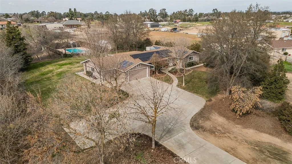 Back On The Market-Sellers Are Very Motivated and will look at any reasonable offer. Price reduced $85,000.......Enjoy wonderful country living on 2.26 acres with 4 Bedrooms and 3 bathrooms with Owned Solar+ addl. panels for energy efficiency and affordability. Walk your children across the street to the desirable elementary school with an excellent reputation. This wonderful family home has a desirable floor plan and is ideal for entertaining with loads of living space inside and outside. The home has an extra flex room that could be adapted to a fifth bedroom, office, etc. Enjoy the comfortable great room with views to the rear yard plus a relaxing wood stove. The kitchen is conveniently located with a breakfast bar and dining room area for all your meals. The countertops are a very nice neutral Corian color with stove, oven, dishwasher, microwave, and pantry for all your cooking needs. The primary bedroom and bathroom are isolated with access to the backyard. The backyard with mature landscaping is an absolute delight with a huge fenced pool for all your future parties you will be hosting. Included are three storage sheds. There is plenty of room for all your outdoor needs in this very well maintained property including raising some horses (BTV). In addition there is a large 3 car garage plus loads of room for parking, storage. etc. This property has plenty of room to grow and ADU possibilities.