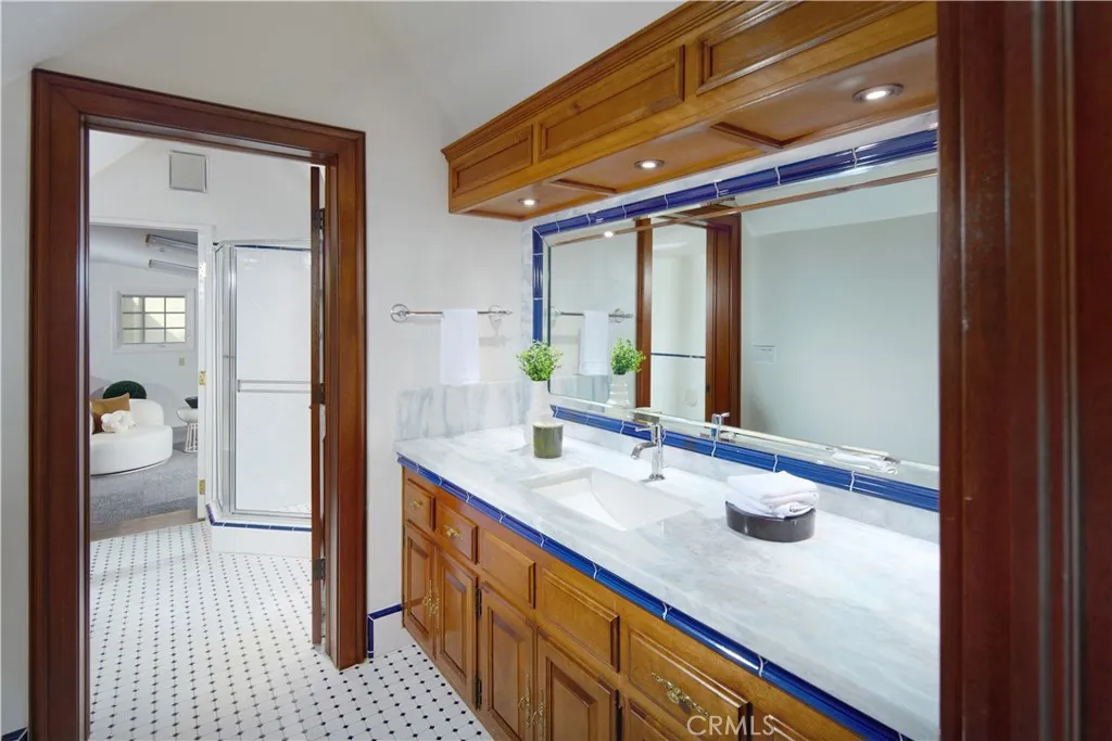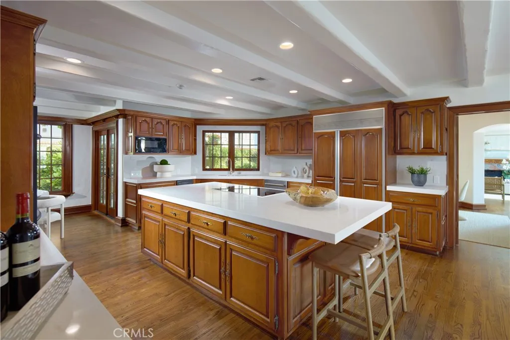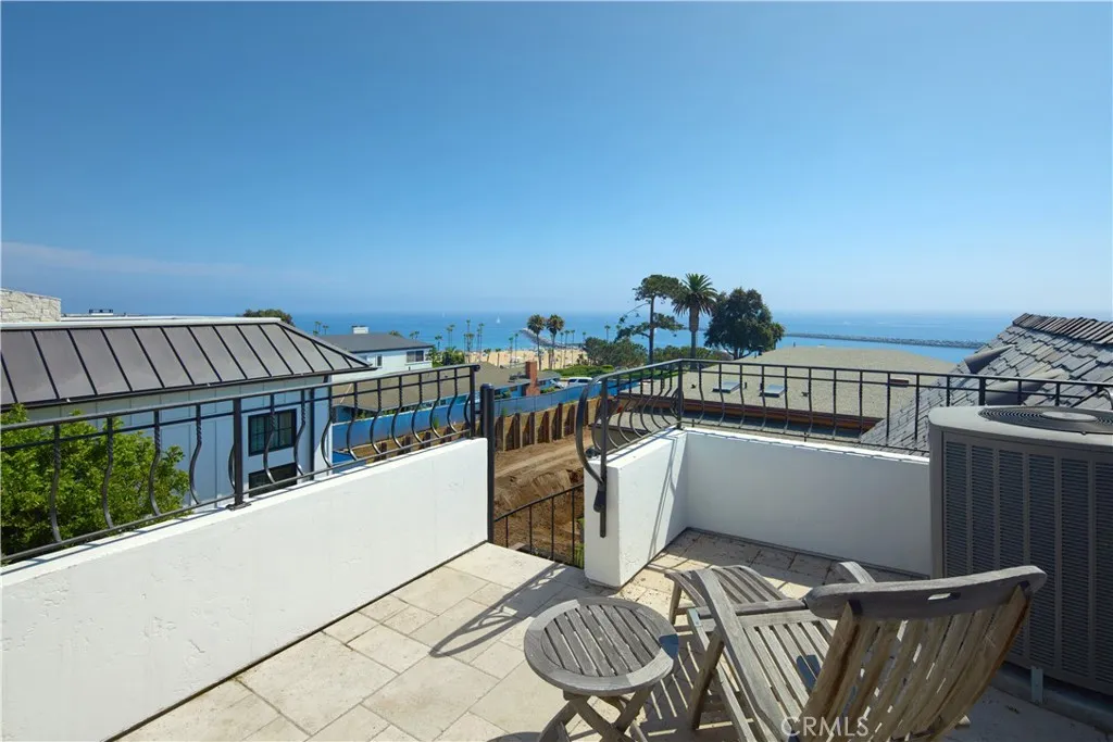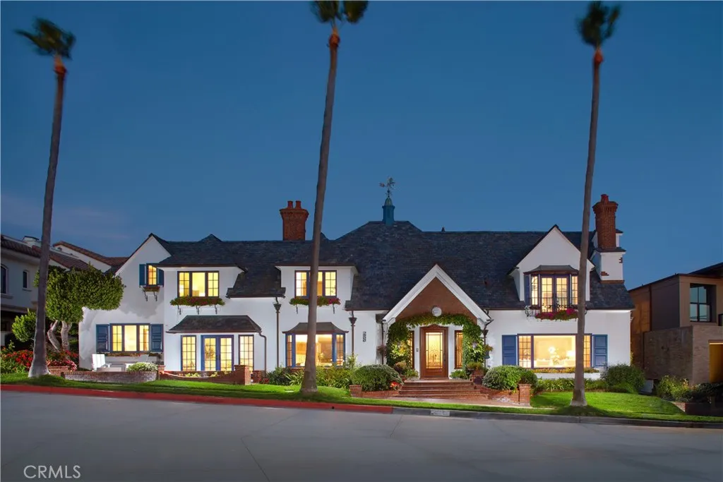 Boasting charm, a prime location, and stunning views, this coastal gem by renowned architect Brion Jeannette is available for the first time and offers an unparalleled living experience in the heart of Corona del Mar with 96' of west-facing frontage. Designed to capture uninterrupted vistas of the Pacific Ocean, Catalina Island, Peninsula, city lights, and Newport Harbor Jetty, this French Country-style cottage is situated on a unique 65' deep corner lot, spanning across two combined lots-- which cannot be duplicated today. Spanning approximately 4,770 square feet, the sun-filled interiors feature four bedrooms and three-and-a-half bathrooms. A charming living room, warmed by a wood-burning fireplace, seamlessly flows into a formal dining area. Adjacent, is a secondary living room where a garden window bathes the brick-surround fireplace in natural light. This inviting space opens to a delightful kitchen, complete with a sunny breakfast nook, an island, wood cabinetry, and new quartz countertops. The main level is rounded out by a powder room and an en suite bedroom offering a jacuzzi tub. Throughout the home, you'll discover character in every cornerantique leaded glass, beamed ceilings, wood flooring, new carpeting, and crown molding. Wood-framed doors open to a rare, beautifully landscaped backyard with multiple patios and a barbecue area, offering effortless grand-scale entertaining in a serene setting where ocean breezes and tranquility converge. Upstairs, three bedrooms await, including the sumptuous primary suite. This retreat offers an ocean and city lights view bal