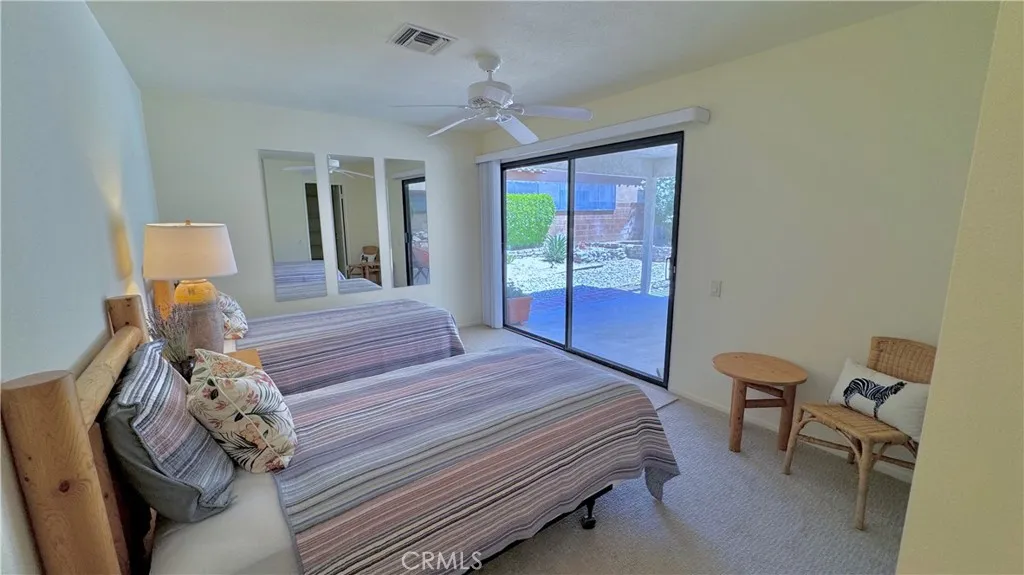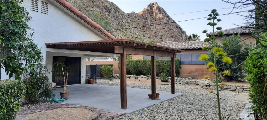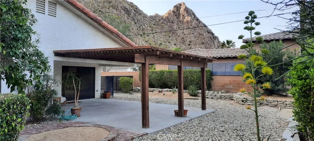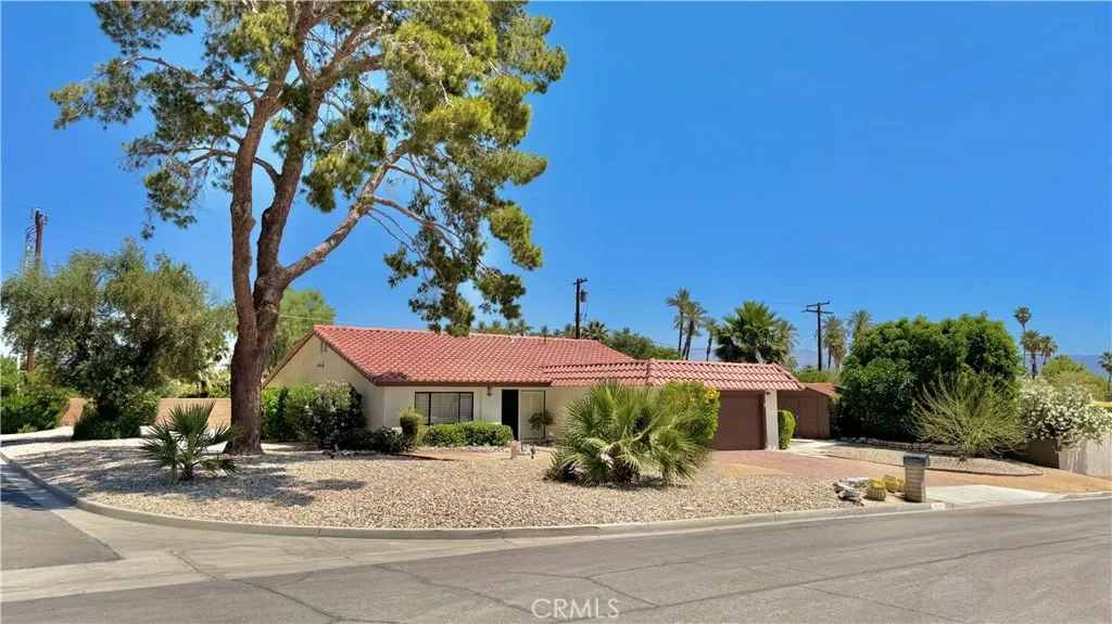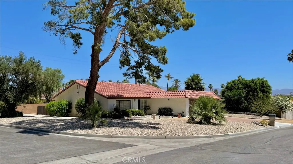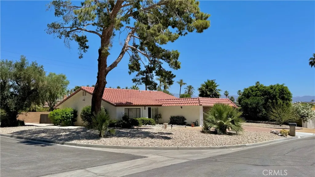 Location! Location! Location! This home is in one of the most sought-after hidden neighborhoods in La Quinta, 'Highland Palms', with Indian Wells Tennis Garden and shopping nearby. It's also on one of the best lots in a very quiet neighborhood. It's situated on a large corner lot, with one side being a cul-de-sac and a truly spectacular up-close view of the Santa Rosa mountains. Lovely nearby church bells can be heard. With a nice tile roof, lovely entry patio, brick paver driveway, great backyard patio, and well-maintained yard, the home has a wonderful indoor-outdoor floor plan, creating lots of open concept space for entertaining and ease, yet very cozy. It has been lovingly maintained through the years, with all new paint, carpet throughout and new tile floor in the master bath. It has a nice sized master bedroom with en-suite bath including dual sinks and lots of cabinets. Second bedroom offers a sliding door to the patio with a walk-in closet. Third bedroom has a good size closet and mountain view. There is a large outdoor storage shed, with more storage in the two-car garage and plenty of room for a pool or spa. A great move-in ready home or a comfortable vacation getaway. A must see!