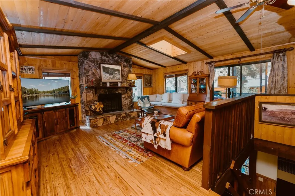 Beautiful 3-bedroom, 2-bathroom home for sale in Big Bear, California, offering a perfect blend of cozy comfort and contemporary style. Sunlight pours through large windows, warming the ashwood floors and creating a bright, welcoming atmosphere. This home includes a convenient separate laundry room and a spacious yard ready for your personal touch. The north-facing design allows the home to capture both morning and afternoon light, filling the space with natural warmth and creating a bright, inviting atmosphere throughout the day. Located just blocks from the national forest, enjoy easy access to hiking trails, outdoor adventures, and the tranquility of nature. The property features an existing irrigation system, plus dedicated electrical and water setups for gardening, allowing you to cultivate a beautiful outdoor space, perhaps even a vibrant greenhouse. This Big Bear home offers a unique opportunity to embrace mountain living, where peace and natural beauty await right outside your door.