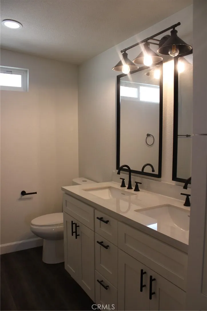 This home has been completely remodeled in January of 2025. This home has a new roof and new windows. All new surrounding landscapes and central control irrigation have been completely installed. Home has received new exterior hardscapes/concrete work. The exterior and interior have been completely repainted as well as interior retextured. New HVAC for home has been installed. Interior new countertops have been installed and cabinets redone in kitchen and bath including new toilets and shower/tub enclosures redone. Master Suite Room addition with new independent AC has enlarged home. Fixtures inside including electric outlets, ceiling fans, light switches and ceiling fans have been replaced. New flooring has been installed throughout. Stainless steel appliances, stove range and oven, washer & dryer & refrigerator are new appliances. Plenty of covered parking space.