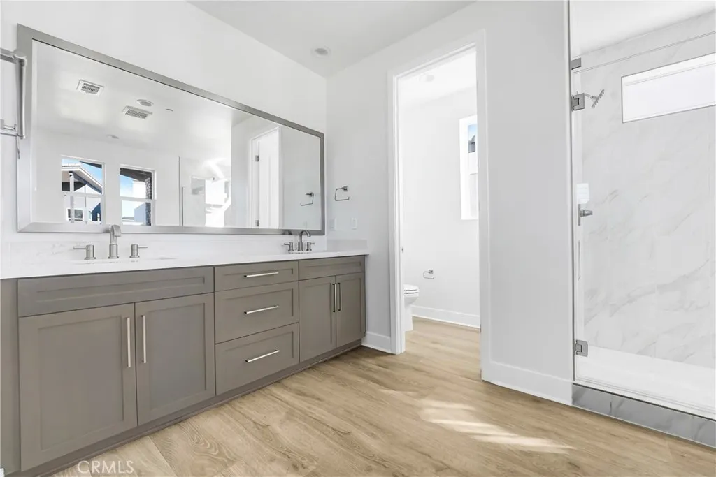 Welcome to your new home at Esprit in Valencia! Greeted by a spacious front porch, walk into this lovely Nathanson plan featuring 4 beds and 3 baths! On the first floor you have the great room, including a separate dining room, spacious living room and a gourmet kitchen featuring a large island. A bedroom with a full bathroom, walk-in pantry and a coat closet can also be found on the first floor and enjoy the outdoors in your lovely side yard complete with a California room! On the 2nd floor you will find the 3 additional bedrooms, including the primary suite which offers separate vanities, a separate tub with a large walk-in shower with seating. There is also a loft, a spacious deck , laundry room with a sink and walk in closets in all secondary bedrooms! Additional features include hardwood flooring throughout, Tesla powerwall 3, built in refrigerator, luxury appliances, upgraded countertops and more!