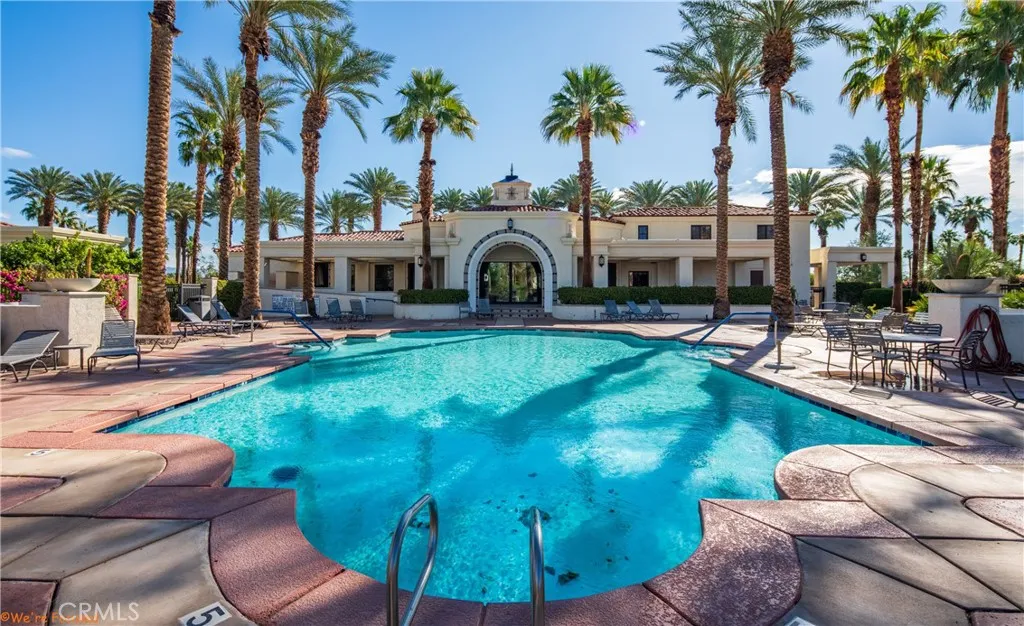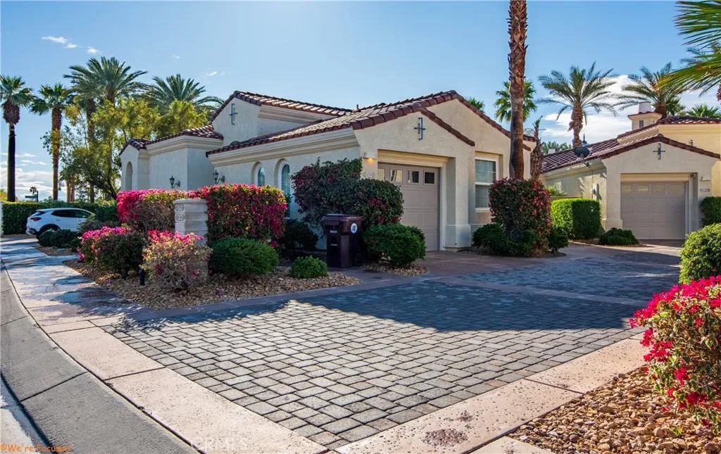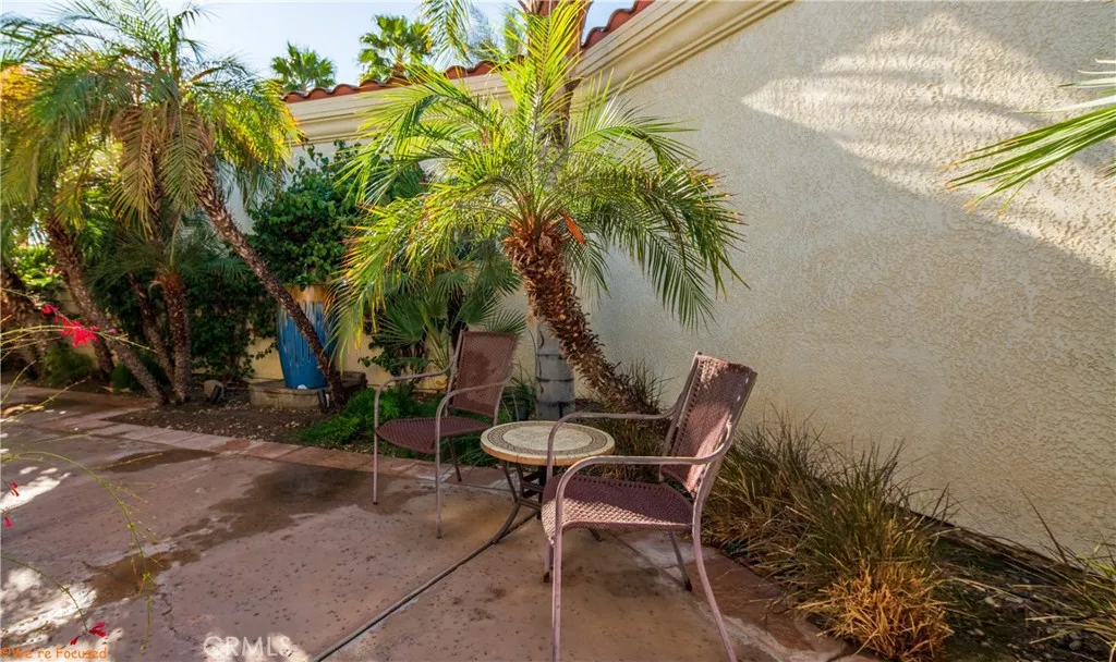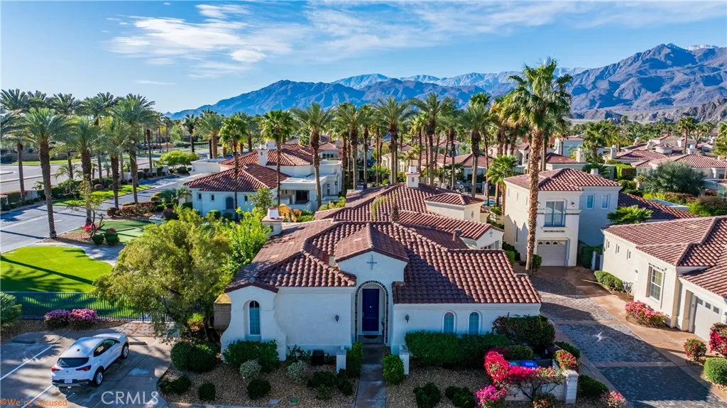 Welcome to your dream home in the heart of the highly sought-after Puerta Azul community of La Quinta! This charming 2-bedroom, 2-bathroom home offers a perfect blend of comfort, style, amenities and location. The open-concept living space is designed for modern living with an abundance of natural light, soaring 12 foot coffered ceilings, and contemporary finishes throughout. Recent upgrades include a brand new HVAC unit, updated bathroom decor and a new irrigation controller. The spacious kitchen is a chefs delight, which opens up directly into the living and dining areas, creating an inviting atmosphere, ideal for both relaxed living and entertaining guests. The generously sized primary bedroom suite boasts a private en-suite bathroom with dual sinks, a soaking tub/separate shower and large walk-in closet. The second bedroom offers plenty of space for guests or a home office, with easy access to the second bathroom. The laundry area is also conveniently located within the home. Step outside to your private patio, perfect for enjoying the beautiful desert weather, with lush landscaping, a built-in BBQ grill area, tranquil water features and a serene atmosphere that complements the homes relaxing vibe. The back yard offers total privacy, completely out of any neighboring units view. The Puerta Azul community is renowned for its resort-like amenities, including a sparkling pool and spa, fitness center, Tennis Court and walking trails, all just a stone's throw away. This particular unit is perfectly located, within extremely close proximity to the clubhouse, pool, and other a