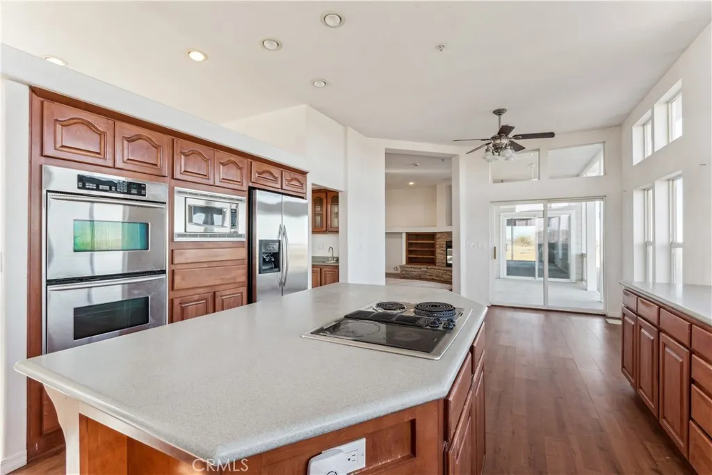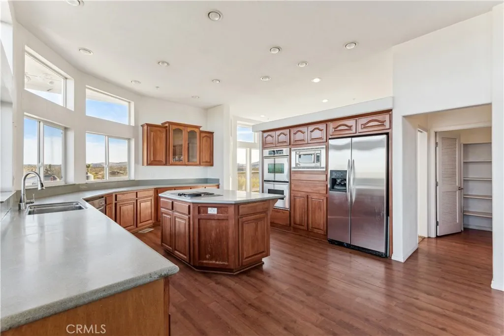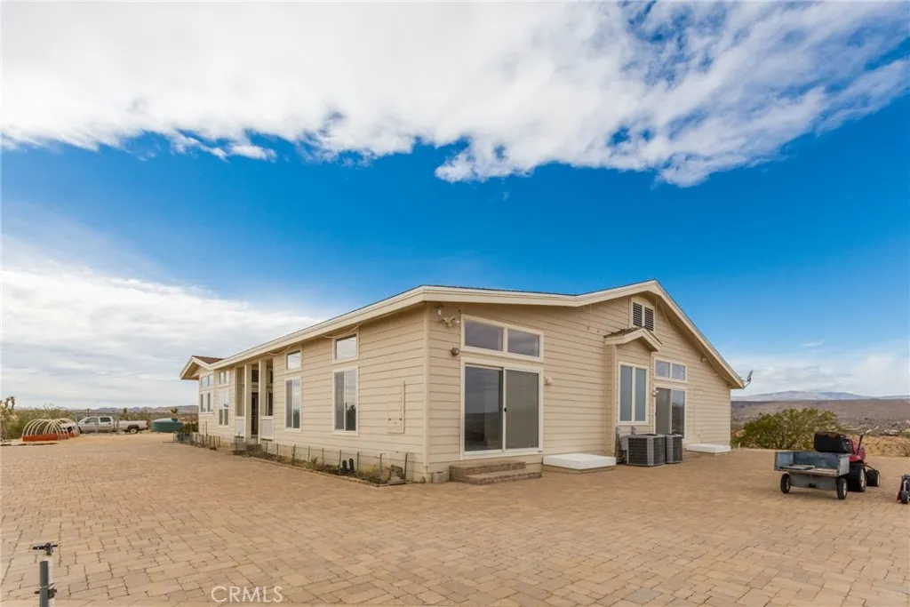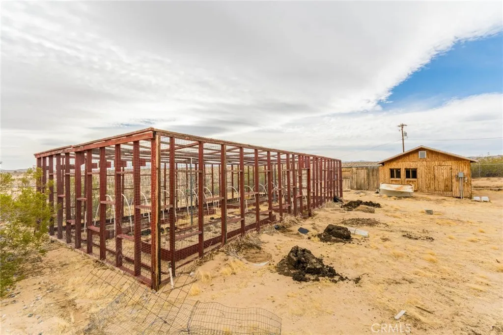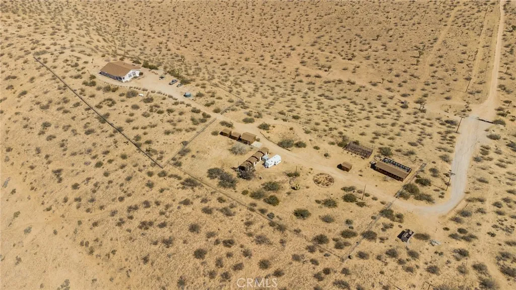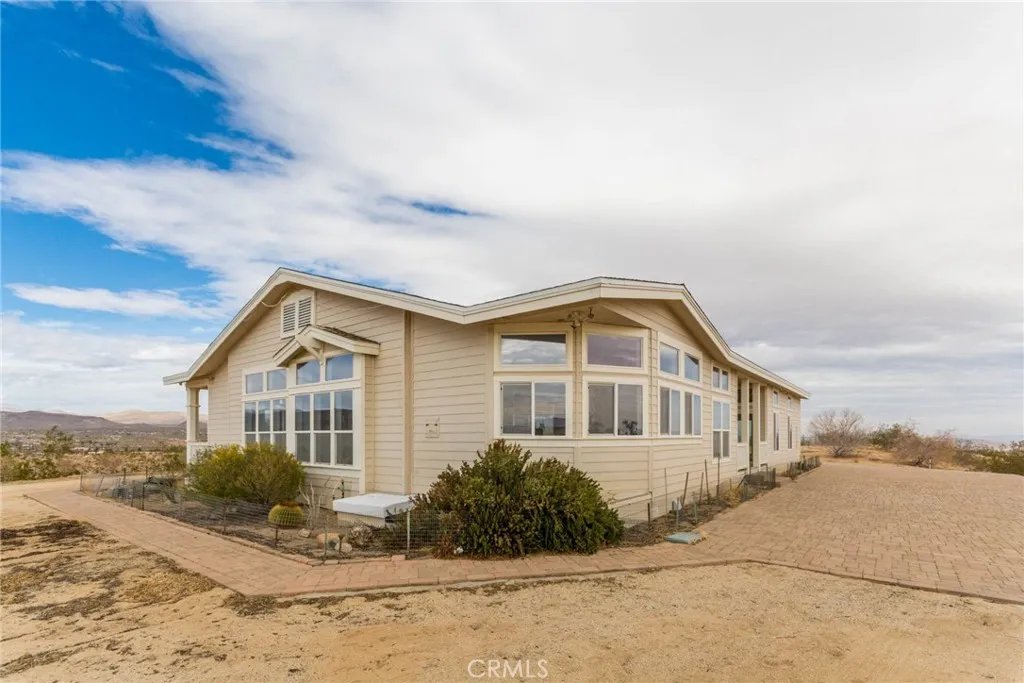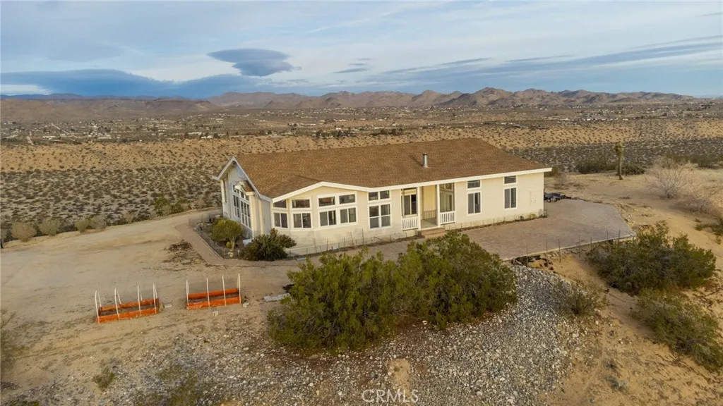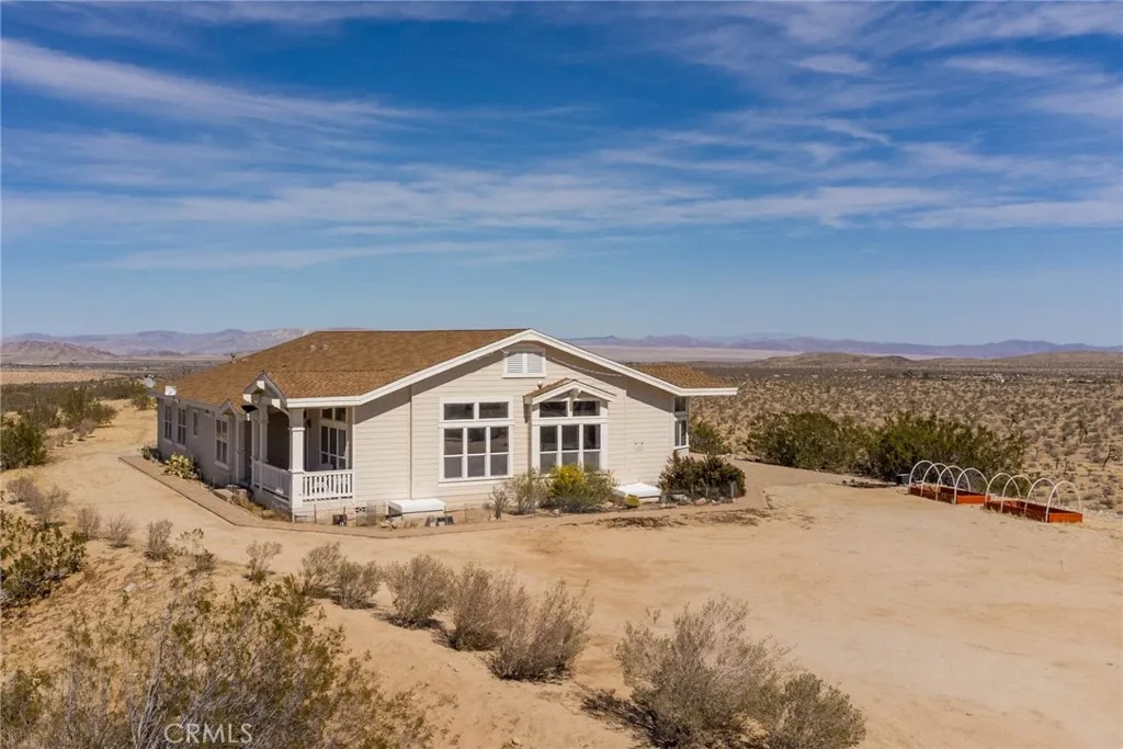 Nestled on 77.5 sprawling acres in the serene desert landscape of Landers, CA, this stunning home offers the perfect blend of luxury and tranquility. This home has everything you need to live in seclusion, from a private well, to a private fire tank, security system, multiple fences and gates, animal coops, gardening beds, multiple storages, and so much more... The home boasts 2 bedrooms, 3 bathrooms, an additional office space and a large den or optional 3rd bedroom. This property is ideal for those seeking a spacious retreat with high ceilings and ample storage throughout. This beautifully designed home boasts a sleek and stylish kitchen complete with all appliances, a spacious butlers pantry, and a center island for meal prep. The dining area is perfect for quiet mornings, and the two spacious living rooms are perfect for entertaining guests. The main living room is flooded with natural light from floor-to-ceiling windows that offer breathtaking views of the surrounding landscape. Step outside to a massive brick patio and take in the breathtaking 360 degree views that surround this property, offering a sense of peace and serenity unlike any other. Whether you're watching the sunrise from your front porch or gazing up at the stars from your backyard oasis, you'll never tire of the beauty that awaits you here. Don't miss out on this unique opportunity to make this one-of-a-kind property yours. Schedule a showing today and experience all that this Landers gem has to offer!
