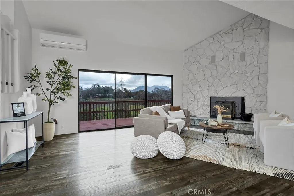 Seller financing available below current national average interest rate with acceptable offer for this beautiful nearly 4,000 sq ft home that has so much to offer including income potential. Located on use able 3 acres, perfect for mini ranch, out of city limits, but conveniently close to town with end of a cul-de-sac privacy. The approx 1700 sq ft main level is an entertainer's dream, featuring a remodeled kitchen with an island flowing into a living room, cathedral ceilings, and a floor-to-ceiling fireplace. An oversized slider opens to a deck, offering beautiful view of Mt. Konocti. This level also includes a large formal dining room, two guest bedrooms, and a beautifully remodeled guest bath with walk in shower. Primary Suite located upstairs with nearly 800 sq. ft. is a luxurious retreat with a jetted tub, walk in shower, fireplace and private balcony. Downstairs is approx 1250 sq ft. Offering incredible flexibility for income generation (long/short term rental) extended family or investment property. The large open room with wet bar(that could be converted to small kitchen), two bedrooms, one bath, separate entrance, and ample parking.There's also plenty of space for RV or boat parking too! For equestrian enthusiasts, the property is fully equipped with 3-stall barn, fencing, and arena area. Recent upgrades include a newly relined well with a new pump and pressure tank. With income potential, room for critters and toys, three fireplaces, multiple decks, a serene setting, this home offers much more than your average home.