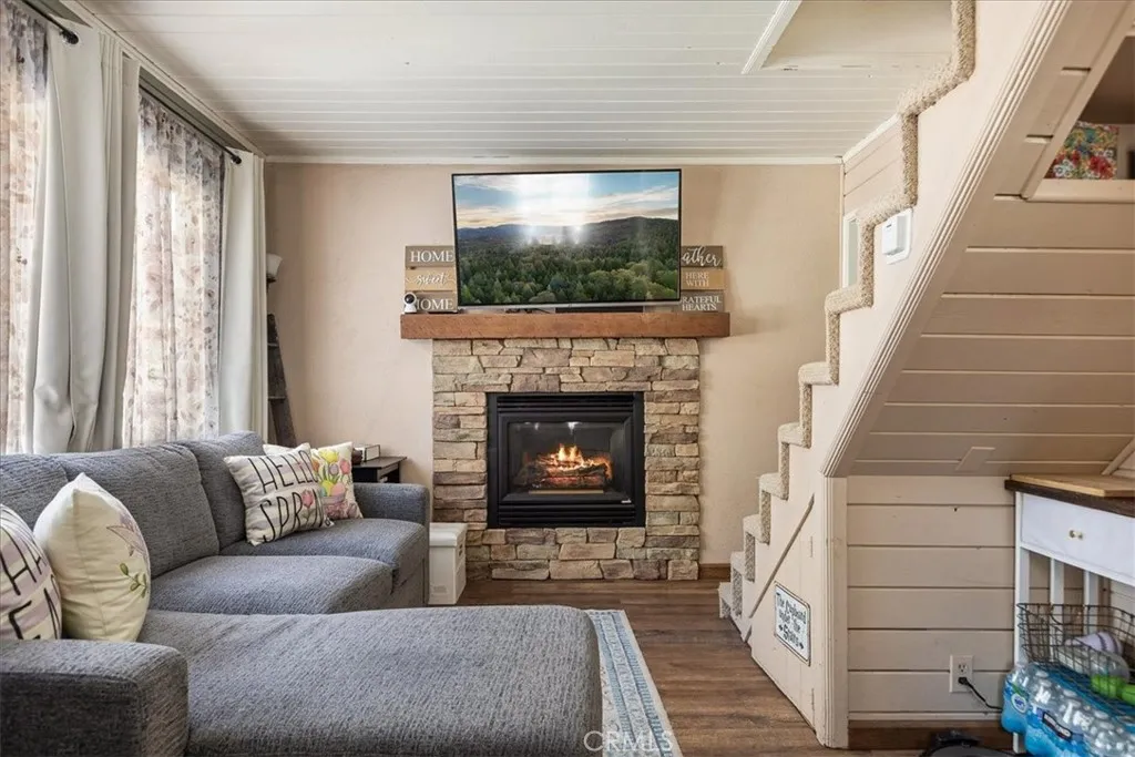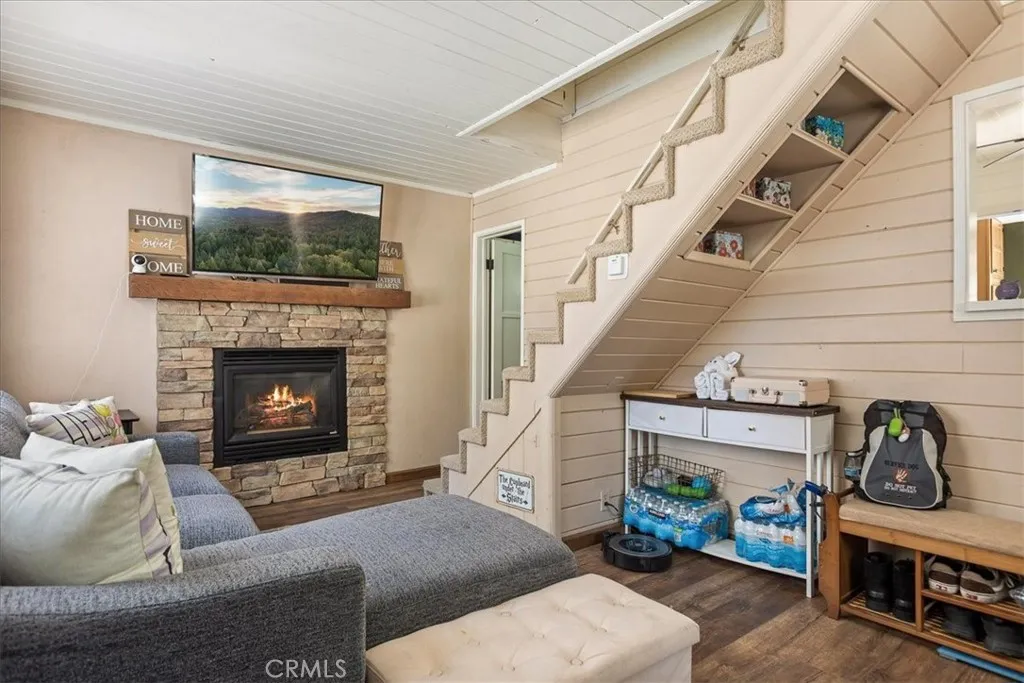 Short Sale Opportunity! Welcome to 27531 Cappy Dr., your cozy cabin retreat nestled in the woods of Lake Arrowhead! Located in the peaceful Crest Park area, this charming cabin sits on a spacious double lot totaling just over 6,500 sq. ft., offering a serene escape in a quiet neighborhood surrounded by lush trees and positioned on a cul-de-sac. With the additional lot there is parking for 5-6 cars! The main floor features a welcoming living area, a well-equipped kitchen, a dining space, and a bathroom, creating a comfortable living environment. Upstairs, you'll find two inviting bedrooms, perfect for restful nights. Step outside to enjoy the L-shaped deck, ideal for relaxing or entertaining in nature's embrace. With shopping and dining just minutes away, this delightful cabin combines tranquility and convenience. Dont miss the opportunity to make this charming cabin your home in the heart of Lake Arrowhead!