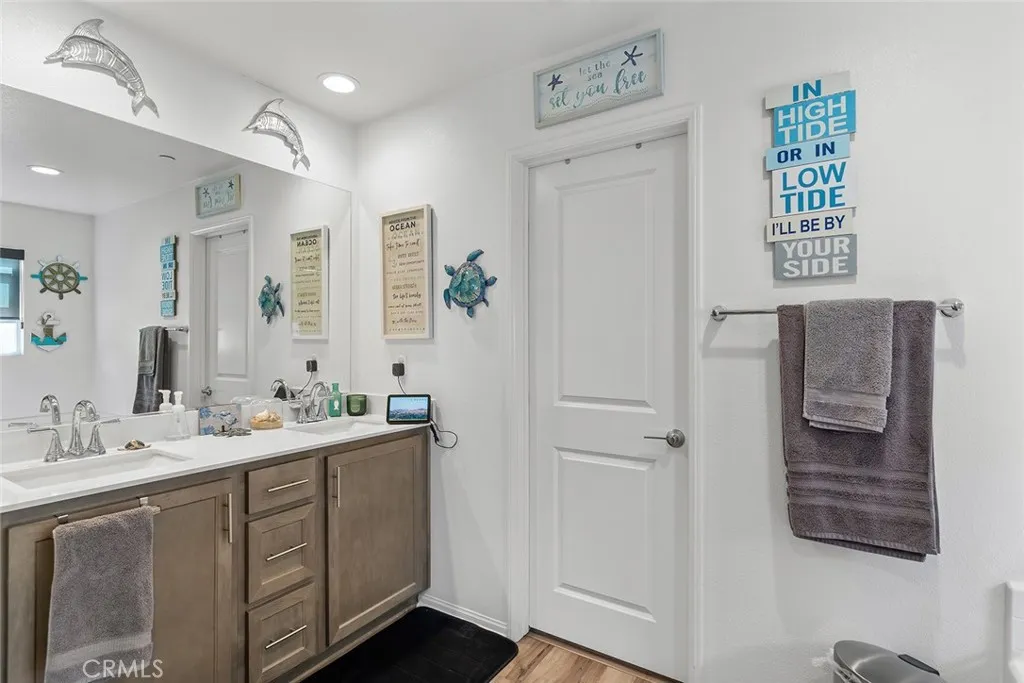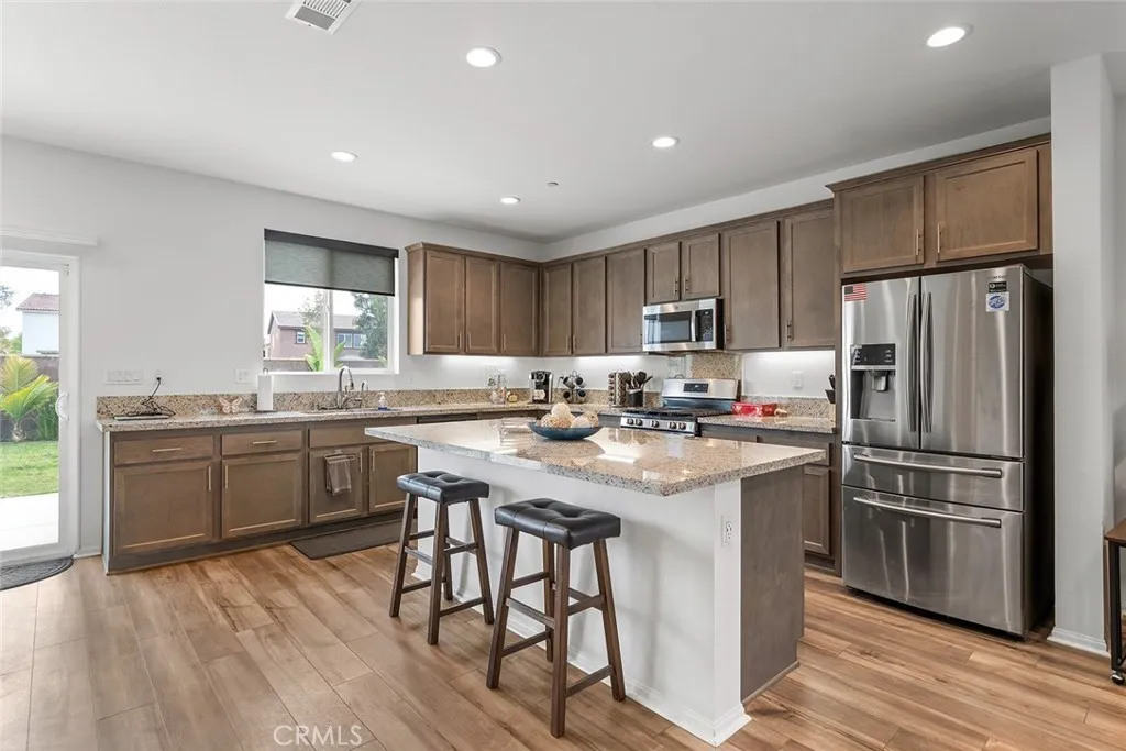 Welcome to this stunning 4-bedroom, 3-bathroom home located in the desirable Summerly community of Lake Elsinore. Built in 2021, this modern residence offers a spacious open floor plan designed for comfortable living and entertaining. The kitchen, which seamlessly flows into the living room, features an oversized island, stainless steel appliances, and ample cabinetry for storage. A convenient downstairs bedroom and bathroom provide the perfect space for guests or multigenerational living. Upstairs, you'll find a versatile loft, a laundry room, and generously sized bedrooms. The luxurious primary suite boasts a private ensuite bathroom and a walk-in closet, offering a serene retreat. The laundry room is located upstairs for more convenience and it has lots of storage. Step outside to enjoy the beautifully finished backyard, perfect for relaxing or entertaining, and best of all there's no neighbors behind you! With its contemporary design and prime location, this home offers the perfect blend of style and functionality. Experience all that Summerly has to offer, the community amenities include 2 pool areas, massive clubhouse, parks with fire pits, walking trails, dog park and more. Close to shopping, dining, freeways and entertainment. . Don't miss the opportunity to make this exceptional home yours!