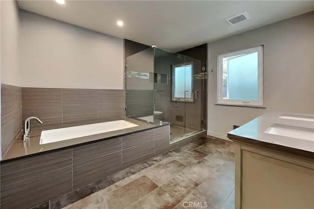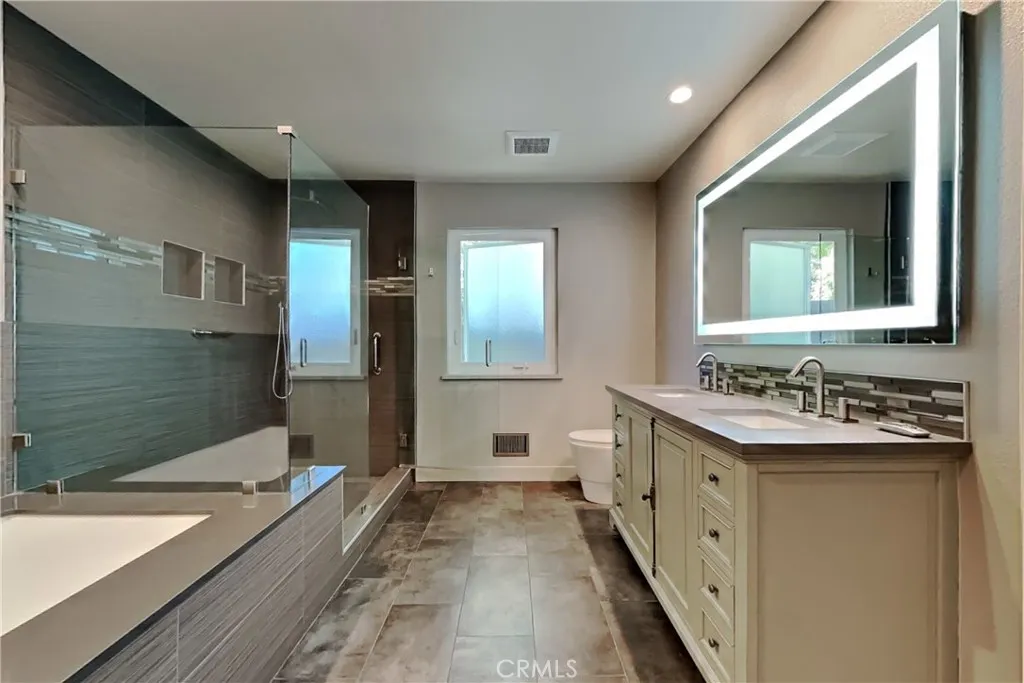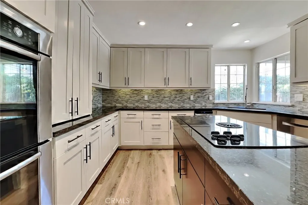 MUST SEE!! **THIS IS NOT AN APARTMENT** Beautiful DETACHED custom home, almost 2,600SF, LARGE 1/4 ACRE LOT - 3BR/2.5BA with living room -AND- family room. Entry leads to living room with vaulted ceilings, fireplace, bar area with built-in refrigerator, and slider to back patio. Formal dining area. Kitchen features - cabinets with soft-close doors/drawers, granite slab counter tops, S/S Bosch double oven, S/S Bosch dishwasher, S/S sink, built-in wine refrigerator, and island with cooktop. Family room with built-in A/V cabinet, and slider to rear patio. 1/2 bath with tile floors, vanity cabinet/sink & dual-flush toilet. Laundry room with cabinets and sink. 2 guest BRs have access to Jack & Jill hall bathroom with marble vanity, dual sinks, and tub/shower. Master BR with recessed lighting and slider to rear patio. Master bath with designer vanity cabinet, dual sinks, quartz vanity top, LED vanity mirror, recessed lighting, dual-flush toilet, HUGE shower with custom tile and seating, rain-shower head, and glass surround. There is also a soaking tub and a walk-in closet. Backyard aluminum patio cover with (3) sliders, and amazing orange & lemon trees! 2-Car garage with workbench, dedicated 220V (could be used for electric car charger) & storage. Newly installed HVAC system, Leafguard gutters, LVP wood-look plank flooring, built-in central vacuum system, and alarm system. Welcome home!