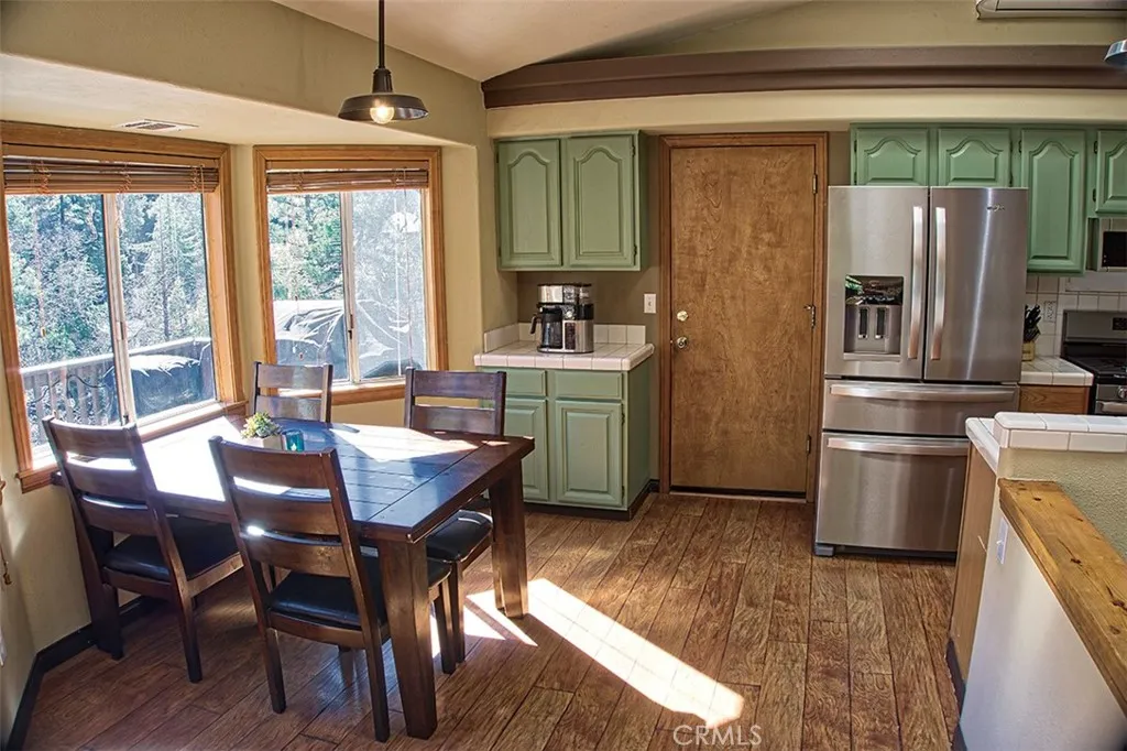 Welcome to your dream mountain retreat! Nestled in the heart of the San Bernardino Mountains, this charming 3-bedroom, 2.5-bathroom home offers the perfect blend of cozy comfort and serene natural beauty. With 1,390 square feet of thoughtfully designed living space, this property is an ideal escape for those seeking a peaceful getaway or a year-round residence in a picturesque alpine setting. Step inside and be greeted by a warm, inviting interior featuring a spacious living area with large windows that frame stunning views of the surrounding forest. The open-concept layout seamlessly connects the living room to a well-appointed kitchen, complete with modern appliances and ample cabinetryperfect for preparing meals to enjoy on your private deck. Imagine sipping your morning coffee or hosting a barbecue while soaking in the crisp mountain air and the sounds of rustling pines surrounding an active creek. The exterior of this home is just as captivating, with its classic cabin charm highlighted by a striking red front door and a spacious deck that wraps around the front, offering plenty of space for outdoor relaxation. The multi-level backyard allows for fun and relaxation while immersing you in nature. The attached garage and flat driveway provides convenient storage for your vehicles or outdoor gear, making it easy to explore the nearby hiking trails, ski slopes, or the sparkling waters of Lake Gregory, just minutes away. Set on a generous lot surrounded by towering trees, this home offers privacy and tranquility while remaining close to the quaint shops, restaurants, and co