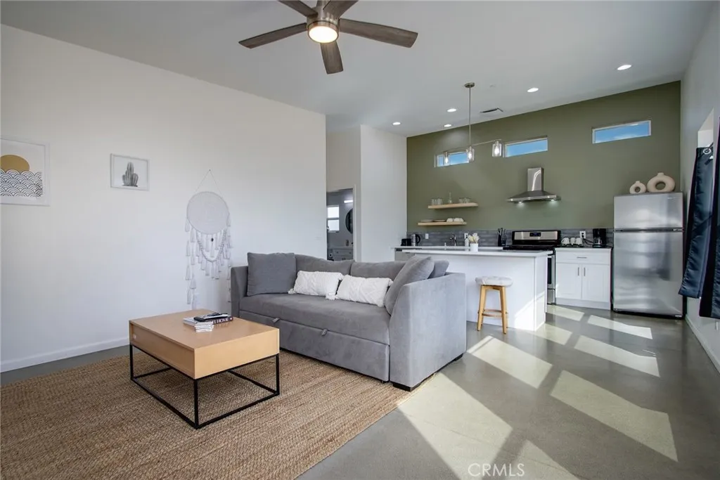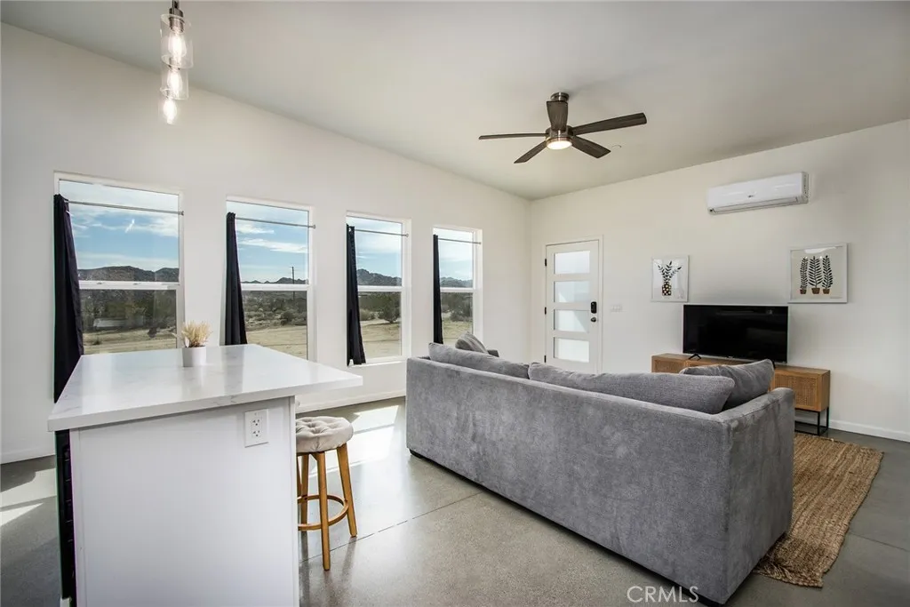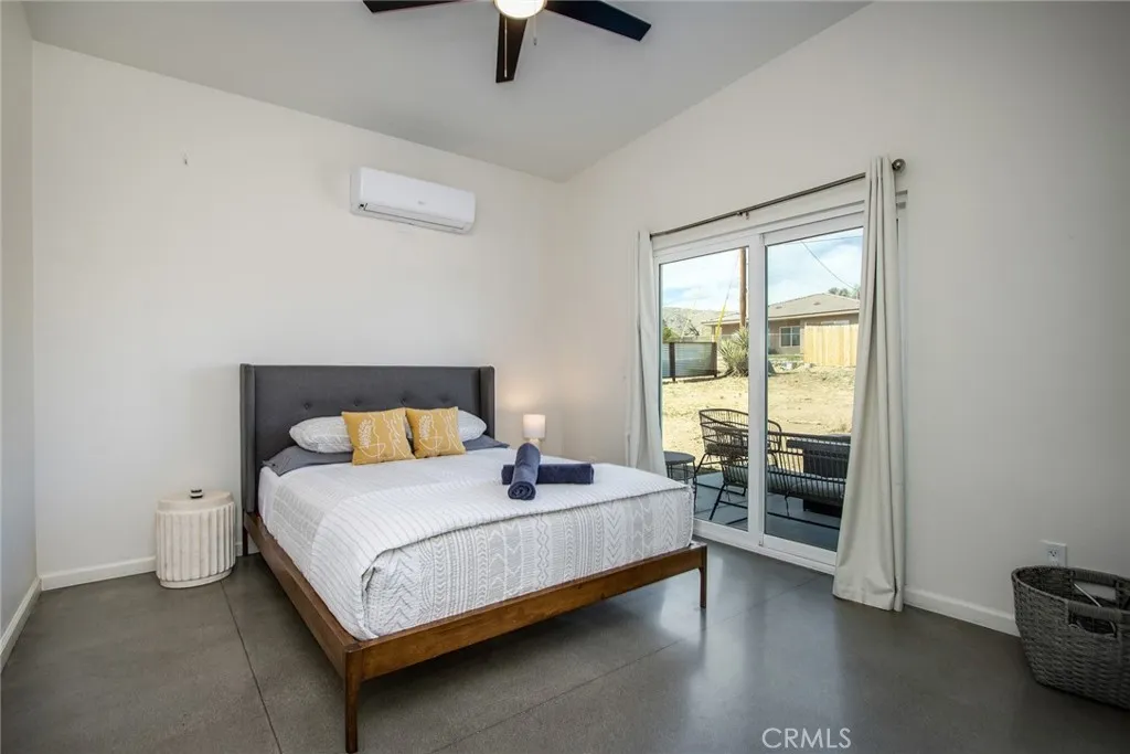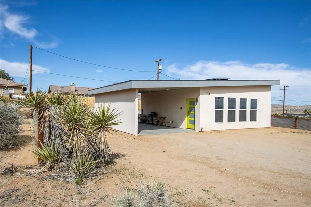 SEE THE VIDEO ABOVE! REDUCED TO SELL! A MUST SEE !! Welcome to this!*PERMITTED ESTABLISHED TURN KEY AIRBNB*BUILT IN 2022! Watch the sun rise and set from Joshua Tree National Park, sitting on your property. Modern Design home with an open-concept living space! Its modern amenities make this property ideal for those looking for additional income, a second home, or a full-time residence. It is a rare gem in JOSHUA TREE for the price! The property features an open floor plan, high-end appliances, ample natural light, and convenient entertainment spaces. The property is situated on a large, fenced lot with a stunning desert landscape and amenities, offering a serene, peaceful, and secluded environment. Also, R.V., ACCESS, PARKING, AND FENCING. This unique, modern home, as cute as a button, offers one bedroom and one bathroom, featuring high ceilings, a neutral color scheme, and abundant views from all windows. Indoor laundry! The kitchen is a chef's dream, equipped with tall white cabinets, granite countertops, and stainless steel appliances. And an area with a private spa fire pit, and a hammock where you can relax, breathe, and stargaze! Huge carport and Solar!. Enjoy a private oasis right in your beautiful backyard. Upon entering this bright and inviting space, an open floor plan will greet you, and the living room is a cozy retreat. These large view windows bathe the room in natural light. BEAUTIFUL modern kitchen. The home has ductless air conditioning and ceiling fans. This backyard is a true vacation retreat, designed for ultimate relaxation and entertainment. Ideally, j