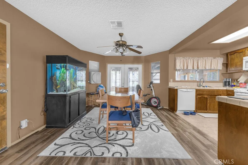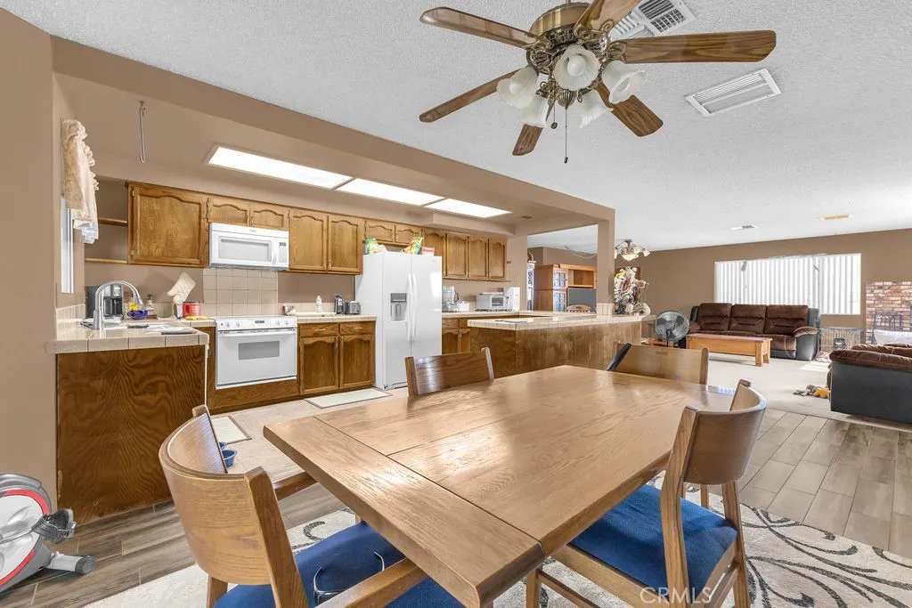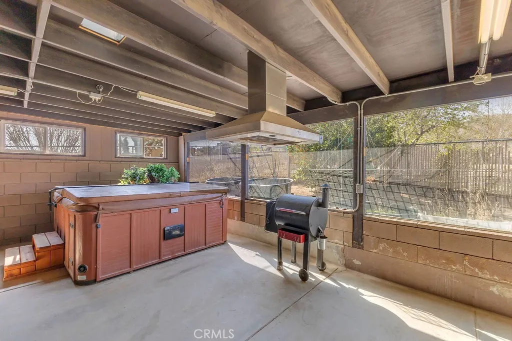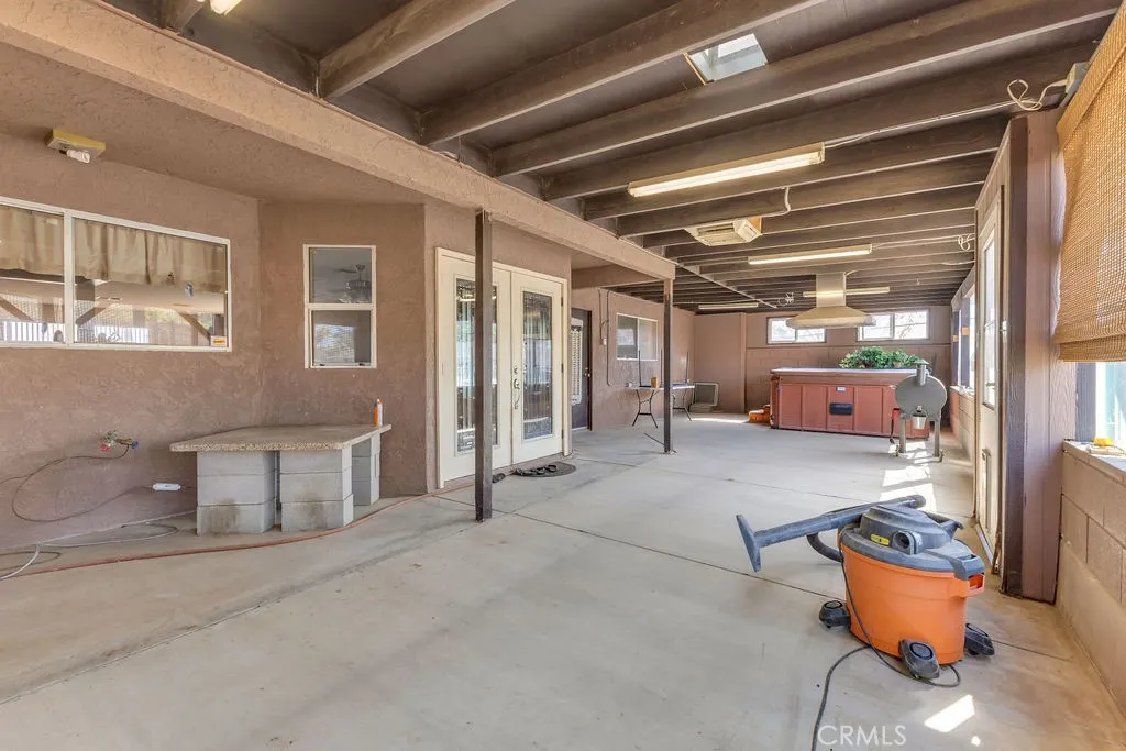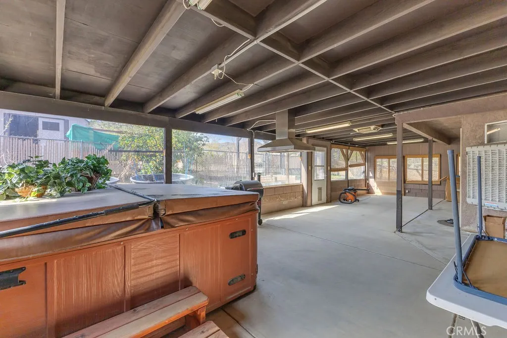 Nestled in the desirable Upper Friendly Hills neighborhood of Joshua Tree, this charming two-bedroom, two-bathroom home blends comfort and convenience just minutes from the Joshua Tree National Park entrance. Perched on a spacious lot, the property features a long driveway, a fenced front and rear yard, a carport, and a two-car garage with a roll-up door. Freshly painted and framed by mature pine and fan palm trees, the home boasts an inviting exterior with a gated front yard. Inside, natural wood doors add warmth to both bedrooms, while central HVAC and an additional window AC unit ensure year-round comfort. The bathrooms retain their original tile countertops and are complemented by a newer water heater and a convenient hall coat closet. The primary suite offers an en-suite bath with a walk-in shower. For added convenience, laundry hookups are located in the garage. A highlight of the home is the enclosed sunroom, complete with a spa for relaxation. The back patio features a swamp cooler, while the rear yard includes RV hookups, a pad for a small RV or carport, a storage shed, and two double gates for easy access. With its unique features and generous outdoor space, this home is the perfect desert retreat. Do not let this incredible opportunity pass you by!