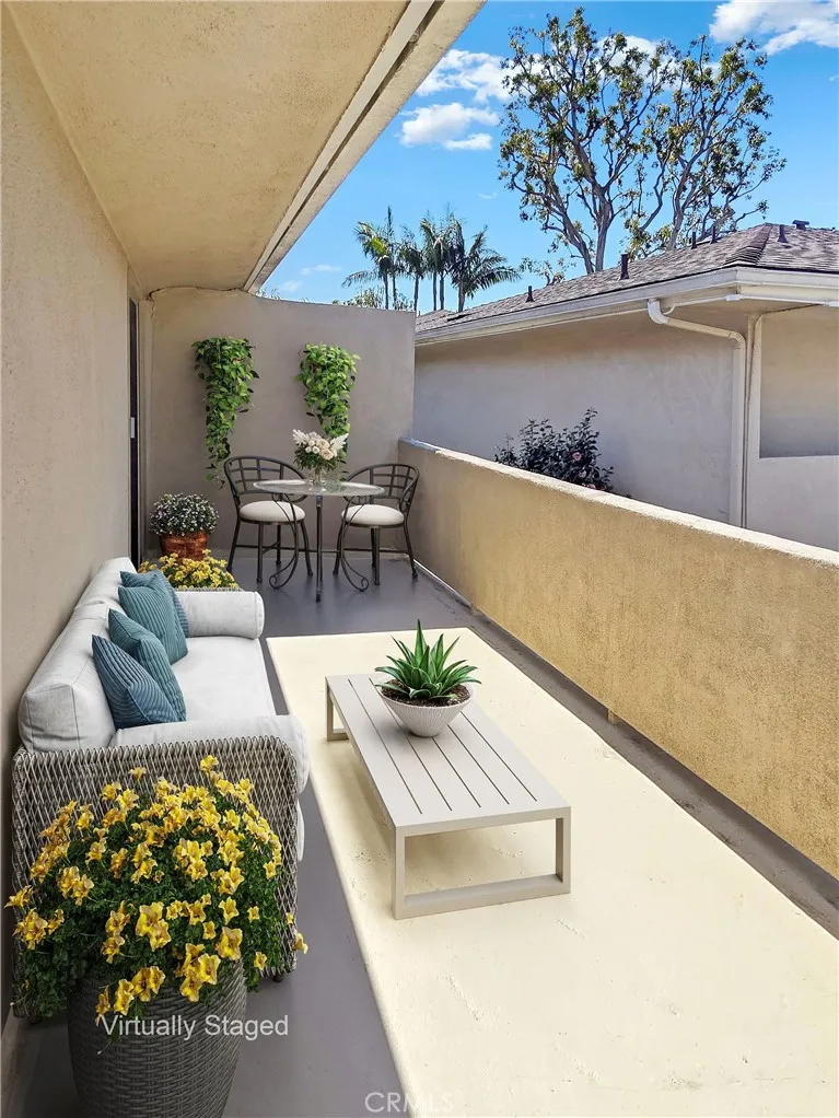 Popular Moneta Gardens complex in desirable north Torrance. Complex has homey feel, walk through pathways, nice pool & community area. HOA fee INCLUDES WATER & trash. Large balcony off master bedroom. Ground level private patio adjacent to living room. All electric unit, no gas. ALL PICTURES with FURNITURE ARE VIRTUALLY STAGED OR ENHANCED to show true possibilities of this home. Great freeway access, near shops, numerous eateries, churches & park. Only one car detached garage.