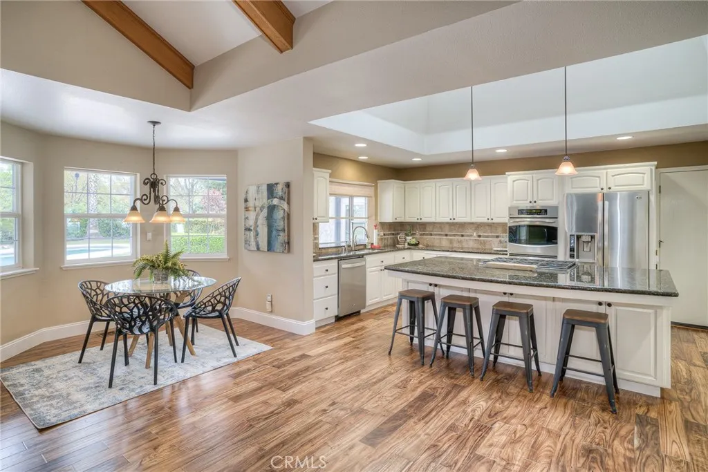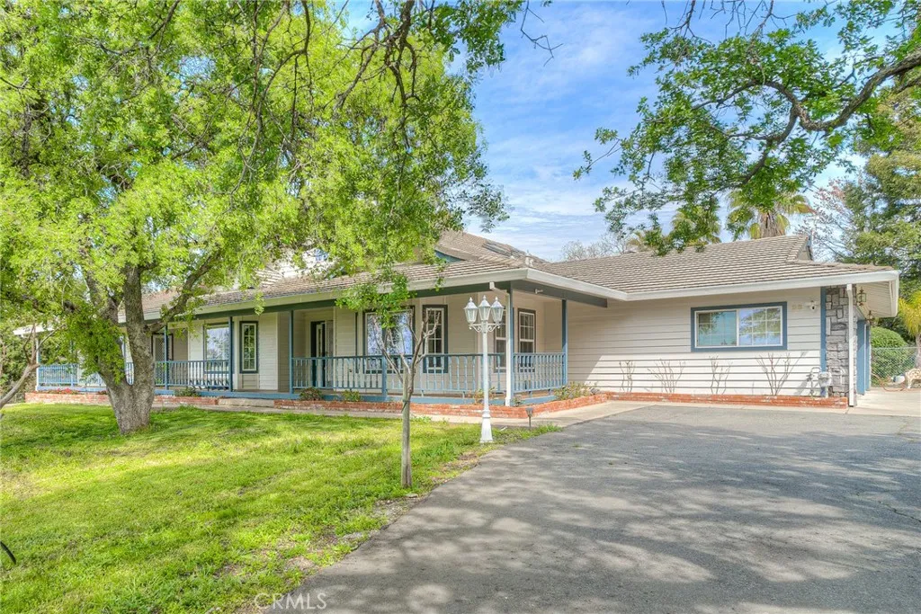 COUNTRY COMFORT, CITY LOCATION. This beautiful, custom home will check all the boxes on your wish list. This Single Level, 3 bedroom, 2 bath home is perfect for summer entertaining. The in-ground pool is surrounded by beautiful landscaping, with a covered patio, all easily accessed from the Kitchen and Great Room. The 2-acre yard is fenced and cross-fenced, with lots of parking for your guests, even an RV carport with electrical hook-up. This is one of Oroville's prime neighborhoods, conveniently located near downtown, and just minutes from Lake Oroville with all its hiking, biking, and horse trails. You'll enjoy the Beautiful Views from the covered front porch which extends the full length of the house, offering room to sit and relax. Features include Owned Solar, separate HVAC systems for the living area and bedrooms, a 3-Car garage with a work bench, a 3-stall barn for storage or hobbies, a Cement Tile Roof and best of all, a Dream Kitchen. The Granite-topped center island has a 6-burner, Natural Gas Cooktop and seating for 4. All appliances are stainless steel, with Double electric ovens, built-in Microwave, and an abundance of cupboard and pantry space. Skylights and recessed lighting keep the kitchen cheery and bright. The kitchen flows seamlessly into the Family Room with its dining nook, vaulted ceilings, new engineered hardwood floors, a cozy wood stove, and a window wall opening onto the back patio, fenced yard and pool. For more formal occasions, there is a large dining room and a newly carpeted living room featuring French doors, a fireplace and a wall of bookc