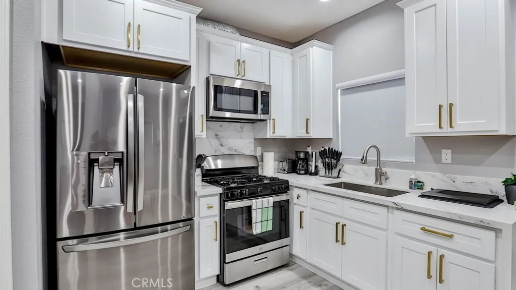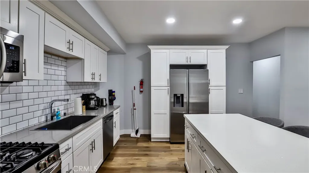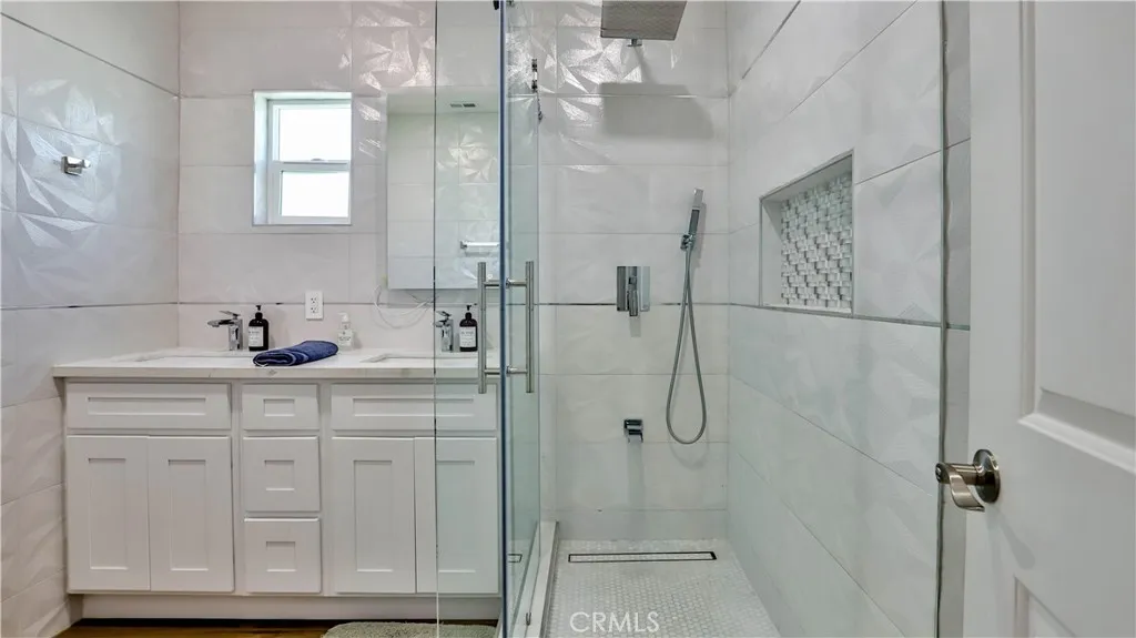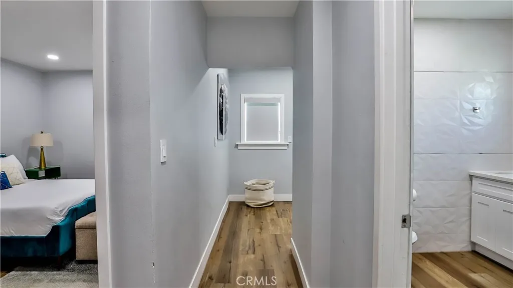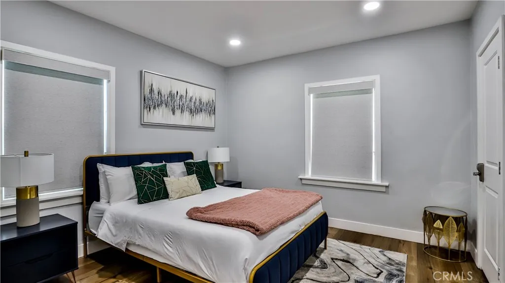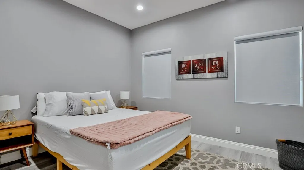 Property to be delivered vacant by close of escrow. Beautifully Remodeled Home with a Separate ADU. Rent one and Live in the other. The Main Home has 3 bedrooms, 1 bathroom, and 1148 sq ft living space. Step inside to a turn-key unit with a large open living room to the kitchen area. This open floor plan features the living room, dining, and kitchen all together in one cohesive space. This unit offers brand new luxury vinyl flooring, brand-new paint, and recessed lights throughout. The kitchen is fully modern with white cabinetry, quartz countertops, and stainless-steel appliances. The bedrooms have ample closet space. The bathroom is luxuriously upgraded with large format tile detailed walls, LED light-up mirror, brand new vanity, and shower. Other great features include recessed windows. ADU has 1 bedroom 2 bath with an office that you can put up a wall and make it another room. The back of the lot has a 2-car garage.