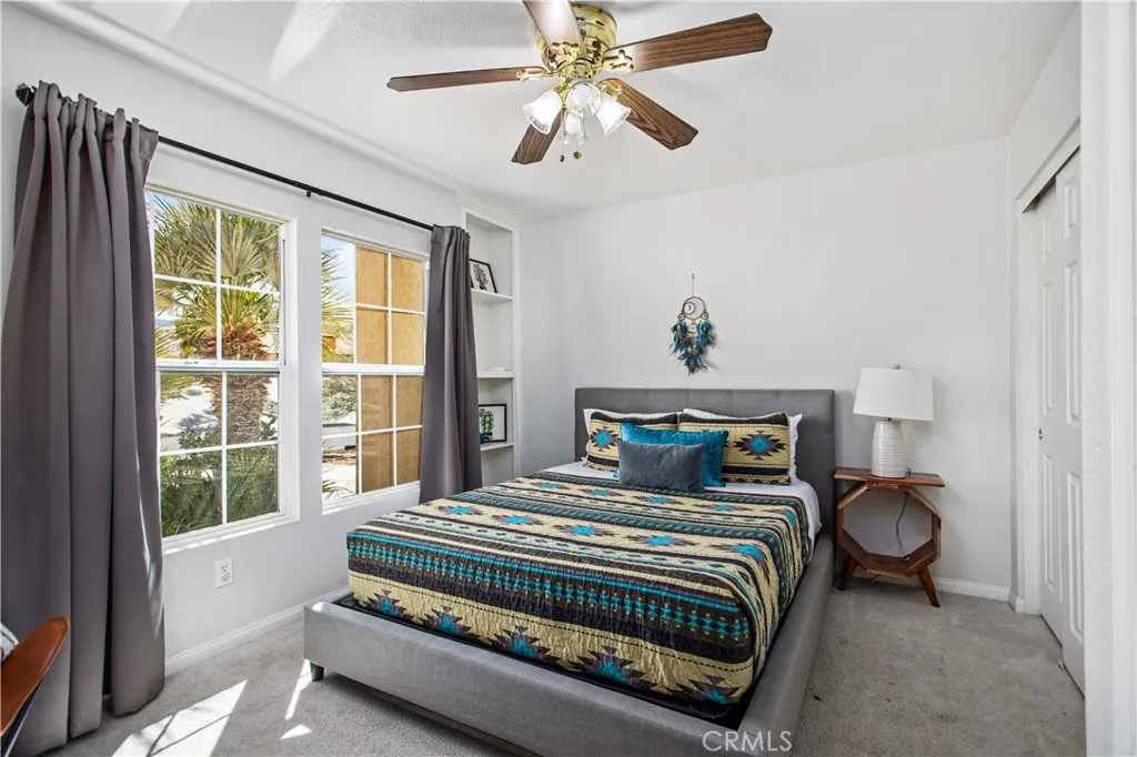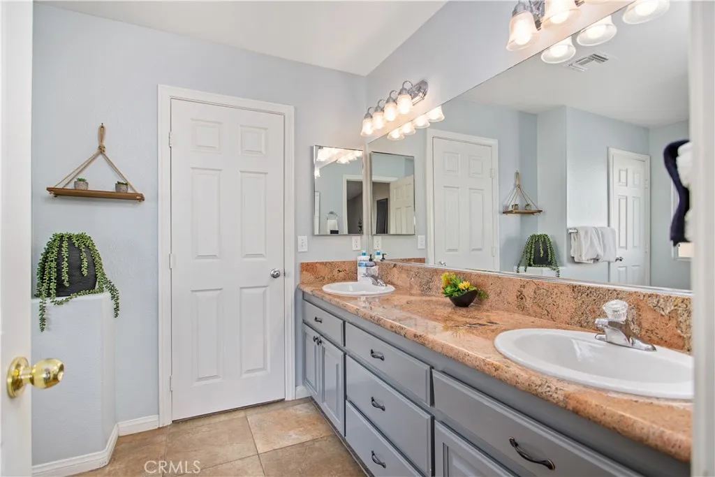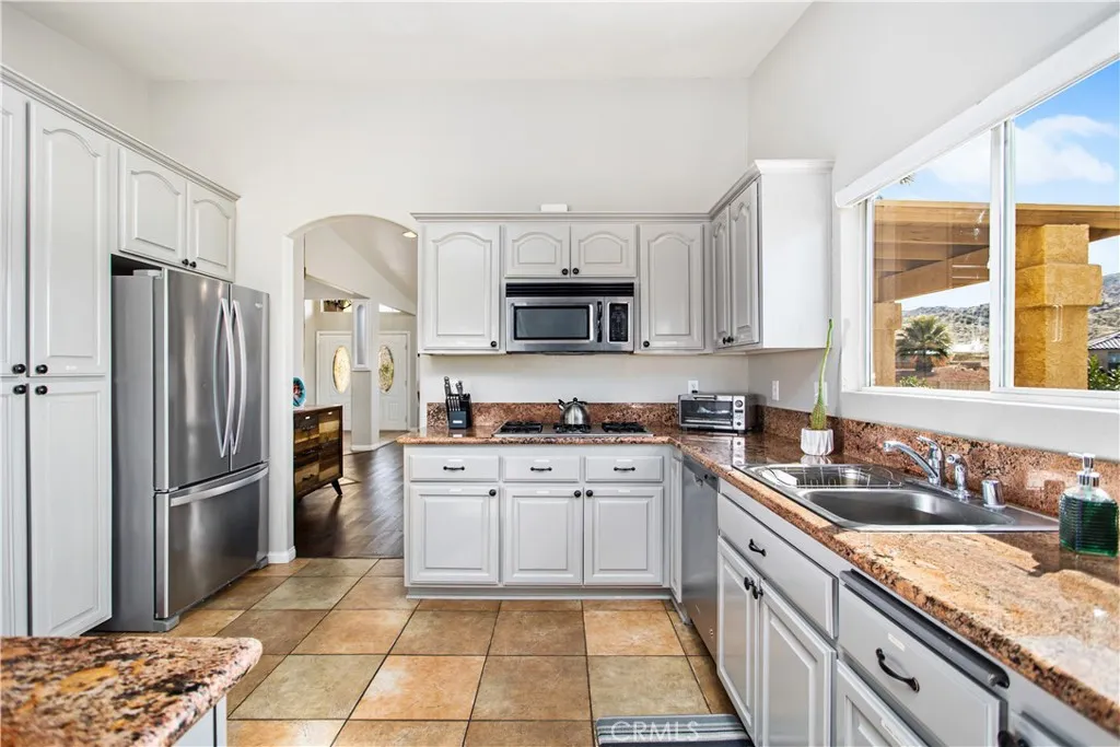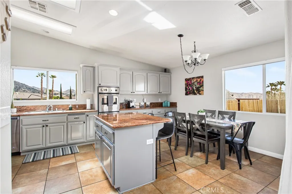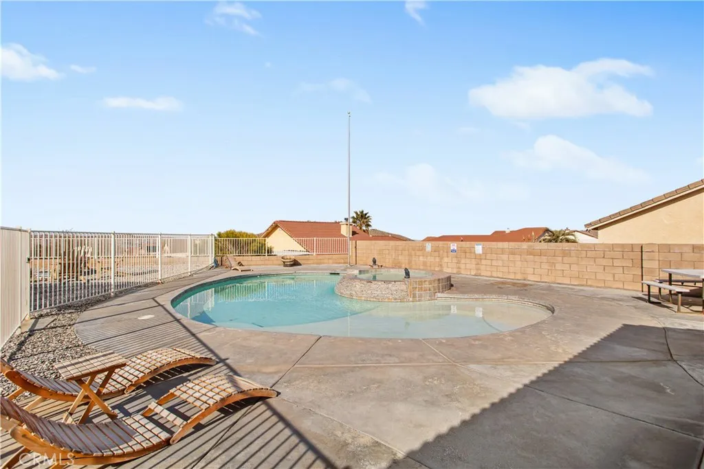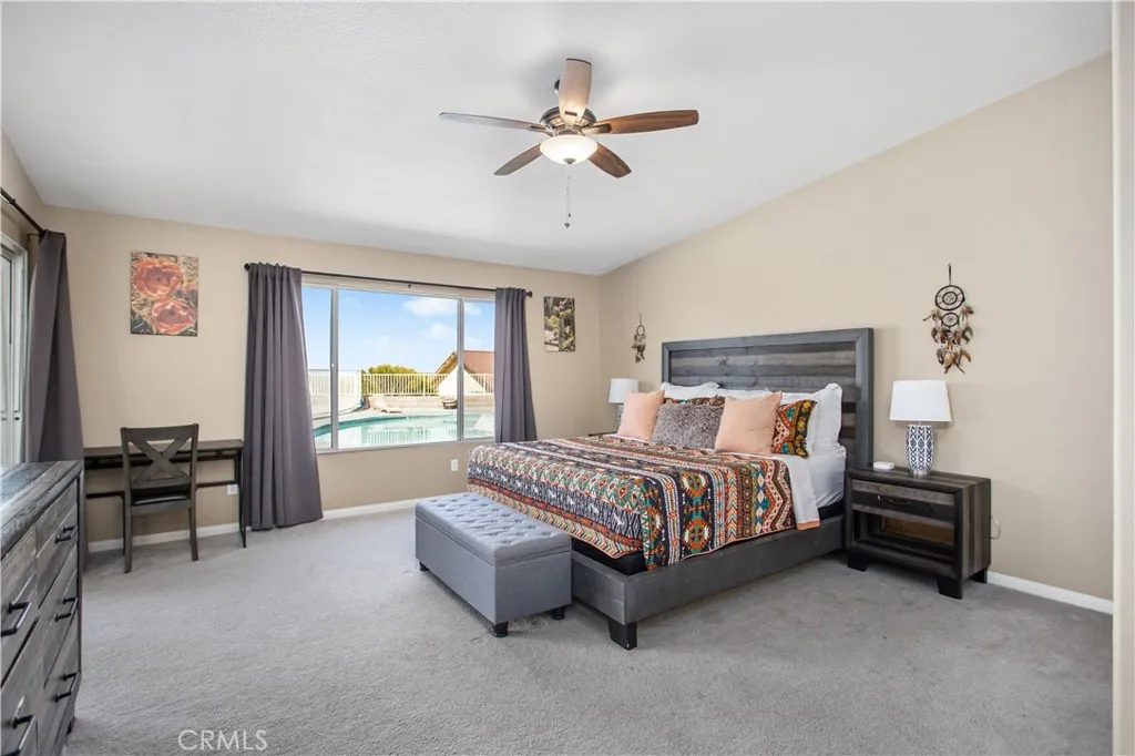 Outstanding Single Level Pool Home w/RV Parking in the prestigious Copper Hill community, and just minutes from Joshua Tree National Parks West Entrance. Featuring 4 bedrooms (3 of them w/attached full bathrooms), a 3-car garage with large circular driveway, gated RV parking with a 50-amp service connection, panoramic mountain views, and a backyard youll absolutely love. Built in 2006, this home was designed for both comfort and style. A double-door entry welcomes you into a wonderful layout featuring high ceilings, elegant architectural details, and an open, airy feel. The formal living and dining areas provide a refined touch, while the family room with a dual-sided fireplace adds warmth and charm. The spacious kitchen features granite slab counters, a double-oven, stainless steel appliances, an island w/storage, and a breakfast nook. A well-positioned window above the sink, and a sliding door off the formal dining room invite you to experience beautiful West facing views and sunsets. A 2nd sliding door off the kitchen opens to an outdoor covered seating area, which is also accessible from a 3rd sliding door found in the primary bedroom. This home masterfully blends indoor and outdoor living for maximum enjoyment. The primary suite is extra spacious, complete with both a walk-in and standard closet, a dual sink vanity, a jetted tub with separate tiled shower, and direct access to the covered patio and fenced pool area. The secondary bedrooms are generously sized, and Youll Love the Direct Bathroom Access for 3 out of the 4 bedrooms. An inside laundry room is convenient an