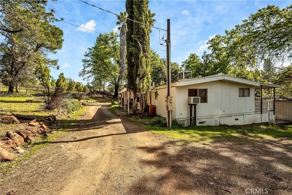 Nestled on 19.4 acres, this residence features a charming porch, a patio, and a balcony designed to showcase the breathtaking views. Inside, you'll find two bedrooms, an office, and two bathrooms. The master bedroom comes with a large walk-in closet, and an en-suite bathroom complete with a luxurious spa tub and a steam shower. The spacious living room and dining room provide ample space for entertaining family and friends. The property includes a manufactured home situated near the work shed, ideal for use as a workshop for craftsmen, gardeners, or potential for a second residence with some TLC. There are 2 water tanks for the house which equal 4,000 gallons and 2 water tanks for the vineyard area which equals 5,000 gallons. Per seller the well is pumping about 90 GPM.
