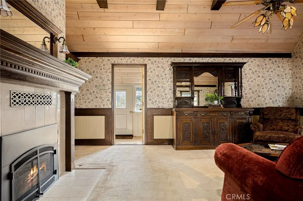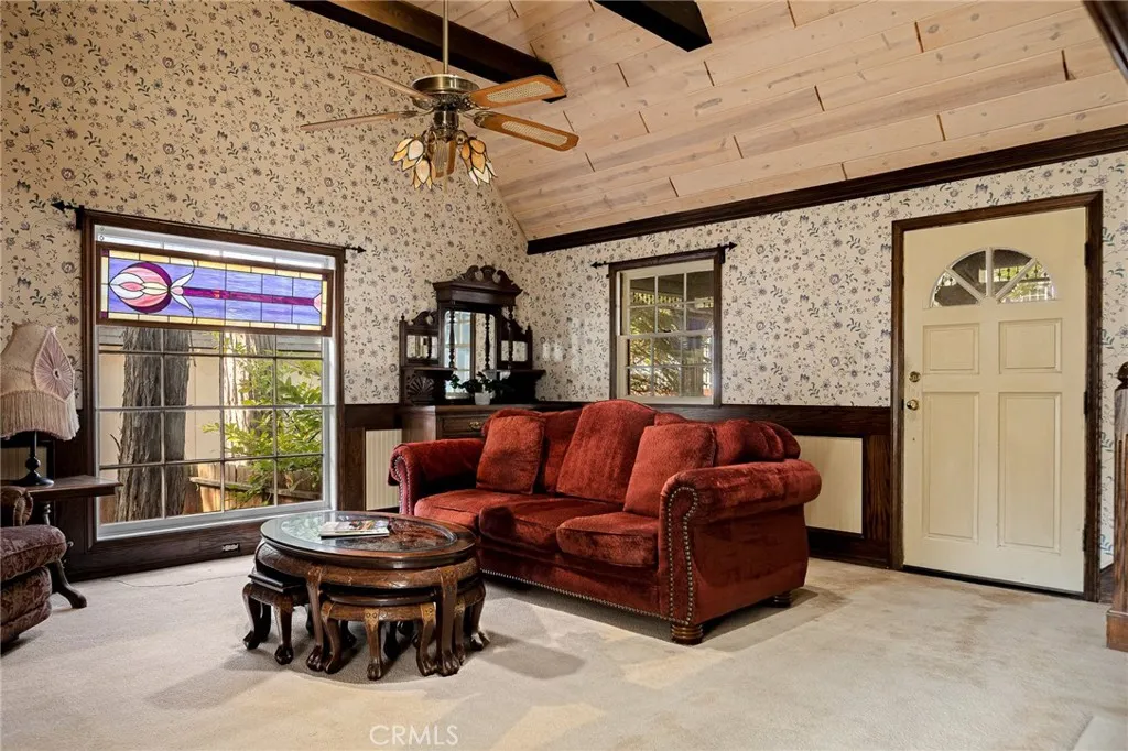 Step into the warmth of this 1930s Victorian cabin-style home, lovingly customized by the sellers father with built-in furnishings and timeless finishes that add heart and character throughout. The enclosed front porch currently serves as a cozy home officebut with imagination, it could become anything you dream up. Inside, youll find a stunning living area featuring a grand fireplace, exposed wall-to-wall beams, and a vaulted ceiling that makes the space feel open yet inviting. The quaint kitchen includes a sweet breakfast nook straight out of a storybook, perfect for morning coffee or evening tales. Outdoors, the yard is cleverly sectioned, with an entertaining deck and a classic front porch that invites lazy afternoons and friendly chats. Located just minutes from both Lake Arrowhead and Cedar Glen, this home comes with full lake rights and sits in a highly walkable neighborhood filled with local restaurants, a gym, post office, and charming shops. This home has been a beloved gemand now, it's ready to shine for its next owner. Dont miss this well-priced treasure!