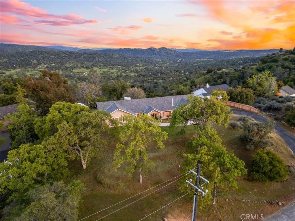 This stunning 4-bed, 3-bath mountain retreat offers panoramic sights of the Sierra Nevada & surrounding hillsides that will stop you in your tracksespecially at sunset. Tucked at the end of a peaceful cul-de-sac, this 2,168 sq. ft. home was designed to capture the essence of mountain living with visits from local wildlife. The spacious, open-concept living area is ideal & the well-designed layout includes a private fourth bedroom & full bathperfect for guests, extended family, or a private home office. The luxurious master suite features a walk-in closet, an oversized soaking tub, separate shower, double sinks, and French doors that open to the serene backyard. Two additional bedrooms share a Jack & Jill bathroom with double sinks & a tub/shower combo, while custom blinds throughout the home offer both privacy and elegance. Step outside to your Trex deck for outdoor dining, BBQs, or quiet mornings surrounded by mature trees and unobstructed views. The property includes two storage sheds, perfect for tools, gear, or extra space to keep things organized. There's even a separate driveway for your RV, boat, or toysand just steps away from your front door in the cul-de-sac, you'll find your own private hiking trail to explore. Located in the highly desirable Yosemite Lakes Park community, this home offers more than just a viewit offers a lifestyle. Enjoy access to hiking trails, a clubhouse, golf course, community pool, tennis courts, an equestrian center & local restaurants!