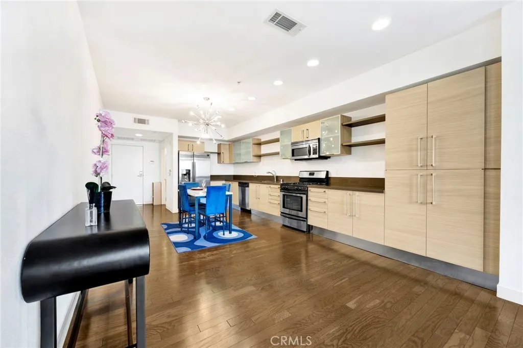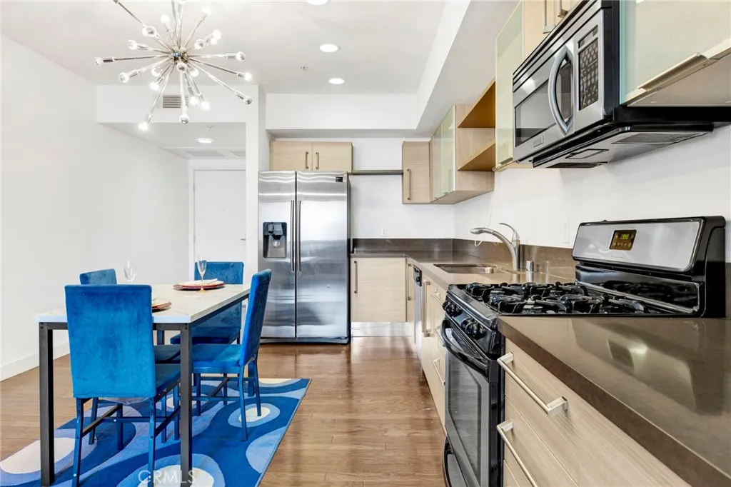 FULLY FURNISHED! PRICE TO SELL! Step into luxury with this stunning fully furnished 1-bedroom, 1.5-bath condo offering 1,130 sq. ft. of modern elegance, right in the vibrant core of Downtown Los Angeles. Again, it is fully furnished and move-in ready! This upscale retreat includes everything you needfrom a plush king-size Tempur-Pedic bed to a 65" smart TV, stylish dining set, cozy sofa, in-unit washer & dryer, and full kitchen appliances including a refrigerator. Soaked in natural sunlight, the open-concept layout is warm, inviting, and perfect for entertaining. The sleek kitchen flows effortlessly into the spacious living areaideal for cozy nights in or spontaneous gatherings with friends. The primary bedroom is a serene sanctuary, featuring frosted glass barn doors, a generous dual closet, and a spa-like en suite bathroom with double sinks and a relaxing atmosphere. Located just steps from everythingSubway, 7-Eleven, and FedEx shipping store are right downstairs. It is next to LA Live & Crypto Arena, FIGat7th, and top dining and shopping all just minutes away. You're also just a 1-minute walk to PIH Hospital, and within easy reach of USC Keck Hospital, UCLA Medical Center, and Kaiser Sunset. This is downtown living at its finestmodern comfort, unbeatable location, and everyday convenience. Dont miss your chance to call this place home!