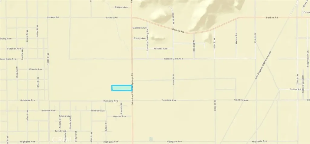 Nice flat 9.77 acre parcel with amazing panoramic views of the Tehachapi mountains, Rosamond Hills and Antelope Valley. Located on paved Tehachapi Willow Springs Rd. Electric Power Poles are on east side of lot in the street. This property is zoned for Agriculture use. There is a wide variety of uses for this property and with a conditional use permit you can explore even more possibilities.