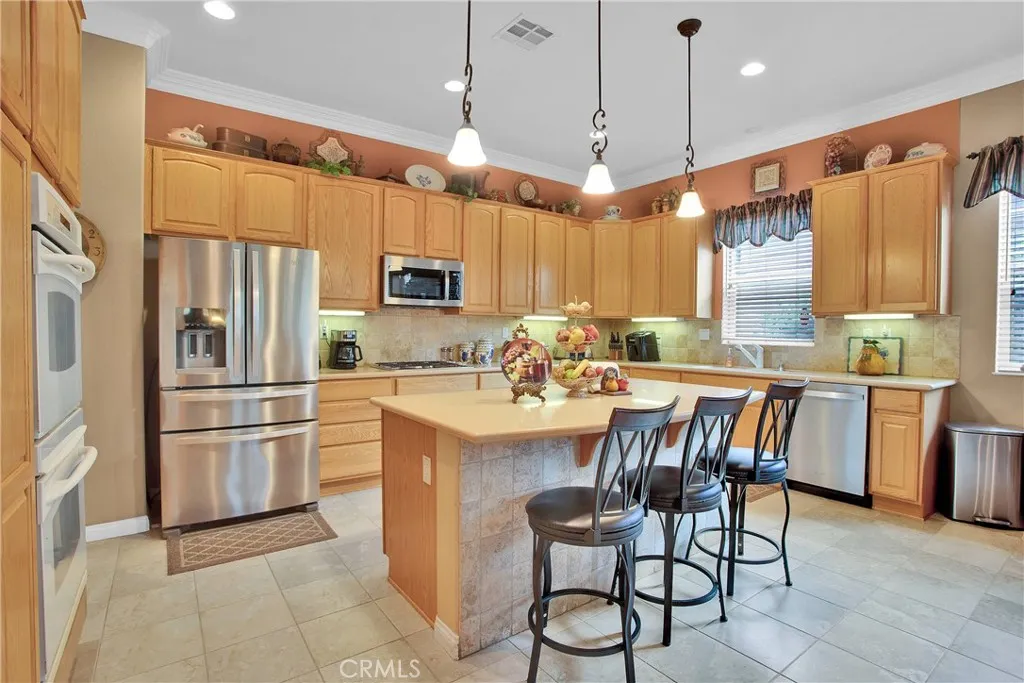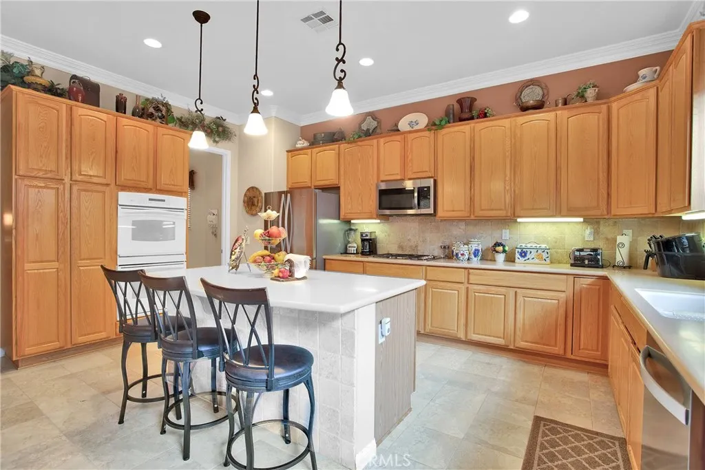 This beautifully upgraded 2,167 sq. ft. home in the 55+ Del Webb community has all the comfort, charm, and thoughtful touches you didnt know you neededuntil now. With 2 spacious bedrooms, an office (perfect for working or hiding from your to-do list), and 3 bathrooms, theres room for everything and everyone. The kitchen brings both style and function, featuring pendant lighting, a chic backsplash, under-cabinet lights, pull-out shelves, a Lazy Susan, and fixtures that make you feel like a gourmet chefeven if dinner is takeout. Ceiling fans with remote controls are installed in every room, so you can adjust the breeze without ever leaving the couch. There's surround sound in the living room for movie nights, upgraded dimmer switches for setting the mood, and a covered patio made for relaxing. The front and backyard are beautifully landscaped with privacy in mind, and the sprinkler and drip system help keep everything thrivingwithout breaking a sweat.