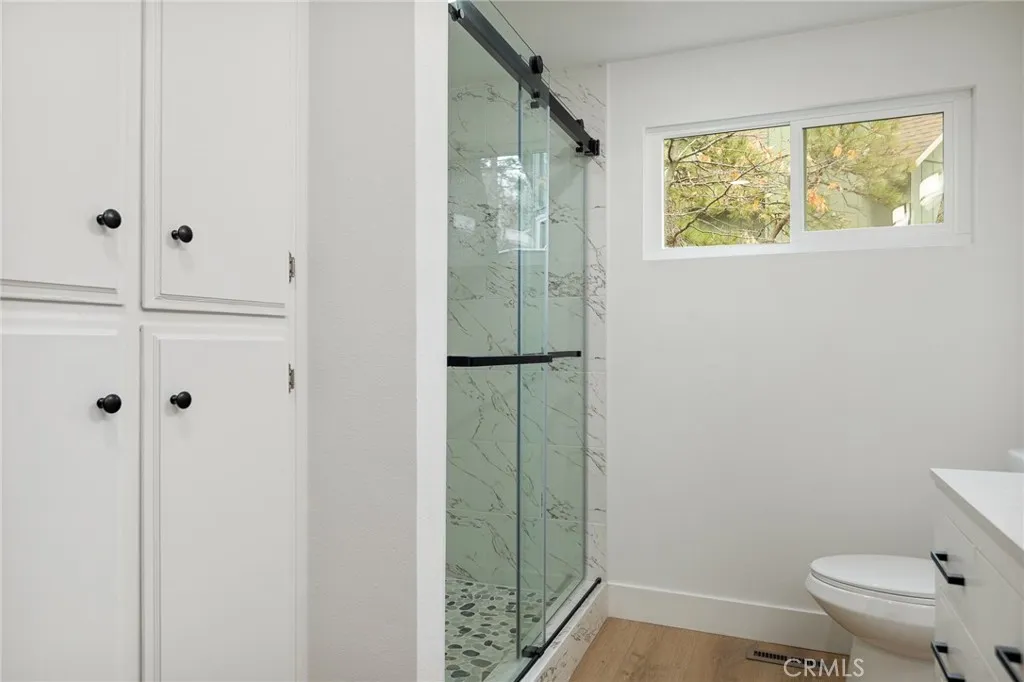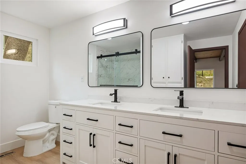 Tucked away in the forested hills of Lake Arrowhead, this newly remodeled cabin is the perfect mountain living experience. The vaulted ceilings and a bright, open-concept layout welcome you with a perfect blend of rustic warmth and modern elegance. The main level features a spacious master suite with a beautifully updated full bath, side deck, and just off the kitchen and living room is a large deck with secluded views of the forest. Every room and space in the home offers a view of forest and vibrant seasons colors and peaceful mountain scenery. Upstairs, youll find two generously sized bedrooms, a 3/4 bath, and a cozy loft ideal for an office, reading nook, or play area. With its quiet forest setting, tasteful design, included lake rights, and proximity to local amenities, this home is perfect for entertaining, relaxing, and making lifelong memories. Just down the street from the country club and national forest boundary, 5 minutes to the west shore of Lake Arrowhead and Tavern Bay Beach Club, and 10 minutes to Lake Arrowhead Village and Blue Jayyou get the best of both worlds: a peaceful retreat with quick access to the areas most loved activities. This is a rare opportunity for buyers seeking both beauty and tranquility in the mountains. Dont miss the chance to explore this homes professional website! (Listing is back active because Buyer did not perform)