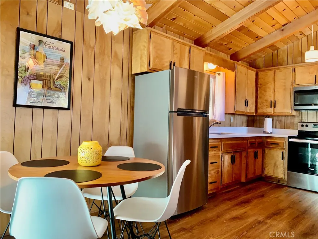 Come and see this Spectacular Mountain home nestled in the trees for that tree house effect, located in the quaint town of Green Valley Lake. This three bedroom and one bathroom cabin is nicely upgraded with new paint and vinyl plank flooring. Nice large den to host family and friends on those special occasions. Bright open great room concept. Kitchen has new quartz countertops and refinished kitchen cabinets. Beautiful wood breakfast bar to enjoy your morning coffee. Nice deck off living room for that indoor/outdoor living to relax and enjoy summer BBQ`s. Cozy brick fire place for those cold winter nights. Nice small deck off dining area for entertaining. This cabin has a new paint job and an asphalt driveway for easy parking and access. Nice storage shed. Large buildup for additional storage or possibly a second bathroom and laundry. Walk to Town, Lake and marina for boating, fishing and swimming Close to hiking trails for those avid hikers or bird watchers. Come and experience what Green Valley Lake has to offer you!