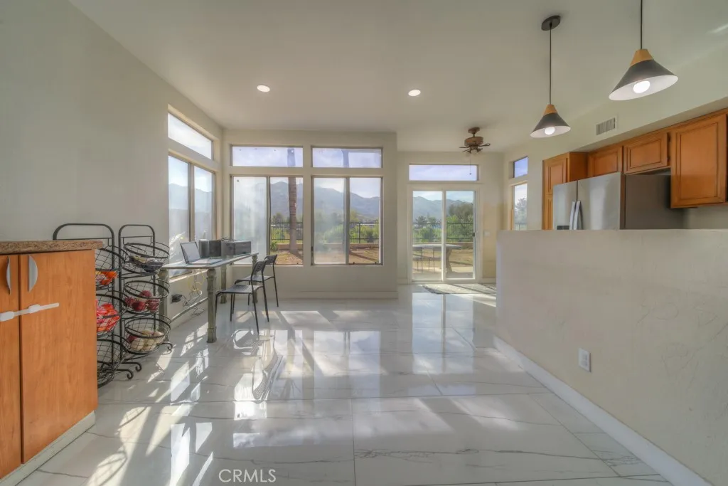 Welcome to this stunning 5-bedroom, 3-bathroom two-story home nestled in the highly sought-after Sunnymead Ranch community of Moreno Valley. Offering 2,193 of living space and high ceilings that create an open and airy atmosphere along with a beautiful FIREPLACE. The exterior has been recently painted and includes a brand-new roof and HVAC systemoffering peace of mind and energy efficiency for years to come. The spacious 3-car garage provides ample parking and storage. Enjoy breathtaking mountain views from your backyard, perfect for relaxing or entertaining. Dont miss this rare opportunity. Situated in a peaceful neighborhood with access to the Lake Club and association amenities which include: Lake (fishing allowed), clubhouse, pool, basket ball courts, tennis court, volleyball court, gym and much more. A must see property.