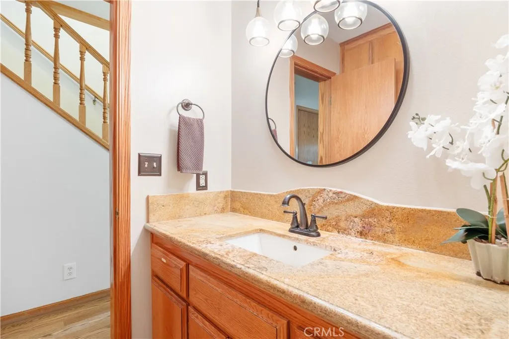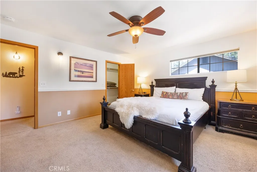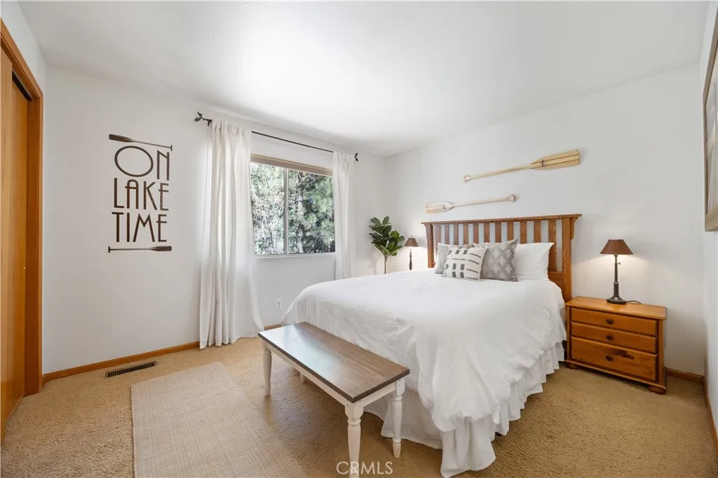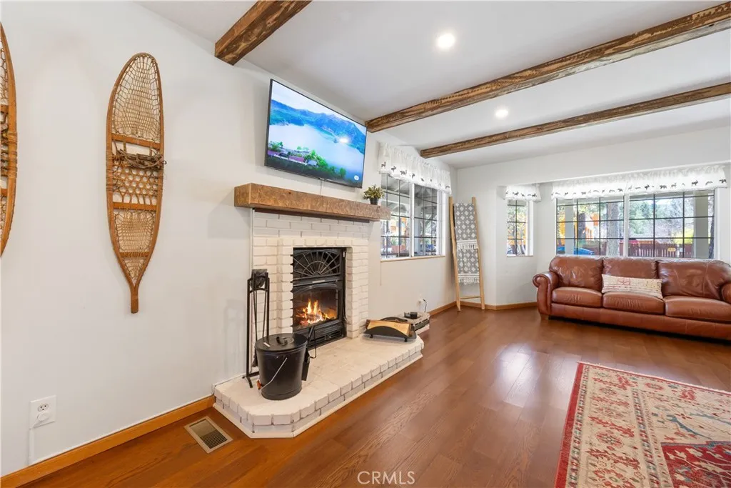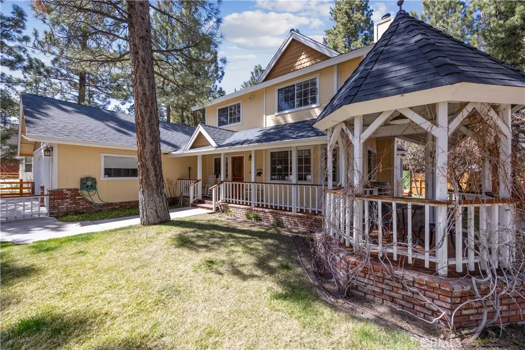 Welcome to your dream mountain retreat in the heart of Big Bear City's highly sought after Forest Springs neighborhood with underground utilities. Nestled on a quiet cul de sac surrounded by towering pines, this beautifully maintained, custom built home offers the perfect blend of style, comfort, and functionality. This property is ideal as a full time residence, weekend escape, or income-generating property. With 4 spacious bedrooms, including a main floor bedroom, 3 full bathrooms, including a primary suite with a spa-like jacuzzi tub, and a versatile bonus room perfect for a home office, den, or game room, this spacious home is designed for both relaxation and entertainment. Pride of ownership shines through with thoughtful upgrades like newer wood floors, decorative beams, recessed lighting, and updated fixtures throughout. At the heart of the home is the spacious kitchen boasting granite countertops, oak cabinetry, a central island, coffee bar, and high end Whirlpool and Bosch appliances, plus a walk in pantry to keep everything organized. The light filled great room is anchored by a cozy wood burning fireplace and 180 degree bay windows that frame the breathtaking beauty of Big Bears true four seasons. Step outside into your own private oasis that features a beautifully landscaped, fully fenced yard bursting with low maintenance perennials, lush greenery, and an automated, in ground sprinkler system. Enjoy al fresco dining on the large rear deck, cozy up with a book on the wrap around covered front porch, or unwind in the ivy laced gazebo with a glass of wine or cocoa