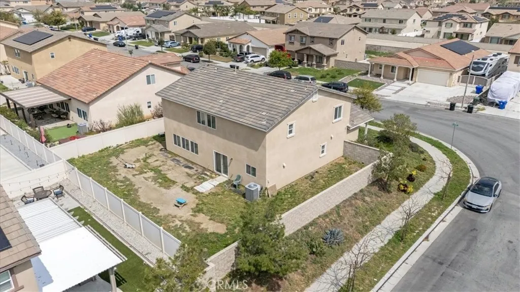 PRICE ADJUSTMENT!!! This property is a rare find at this price. It is located at a newly development community. This corner lot features 7,841 square feet. With 5 bedrooms and 3.5 baths, this 2,915 square foot home has ample room for family and friends. It has an entertaining oriented and open layout with tile flooring throughout the first floor. . When you step in the house, a one bed/one bath, and a guest bathroom is to your left. Going through a walkway, you are entering into an open and well lit familyroom and kitchen. Large windows and sliding door brings in daylight from the backyard into the house. Kitchen has granite countertops and a large island. Upstairs, you will find 3 spacious bedrooms, a good size master bedroom, bath and a laundry room. A tankless water heater supplies endless hot water. The interior was recently painted. The backyard is large enough for your kids and pets to play in. The last but not the least, it is just minutes from the 60,10 and 15 freeways and shopping areas in Eastvale.