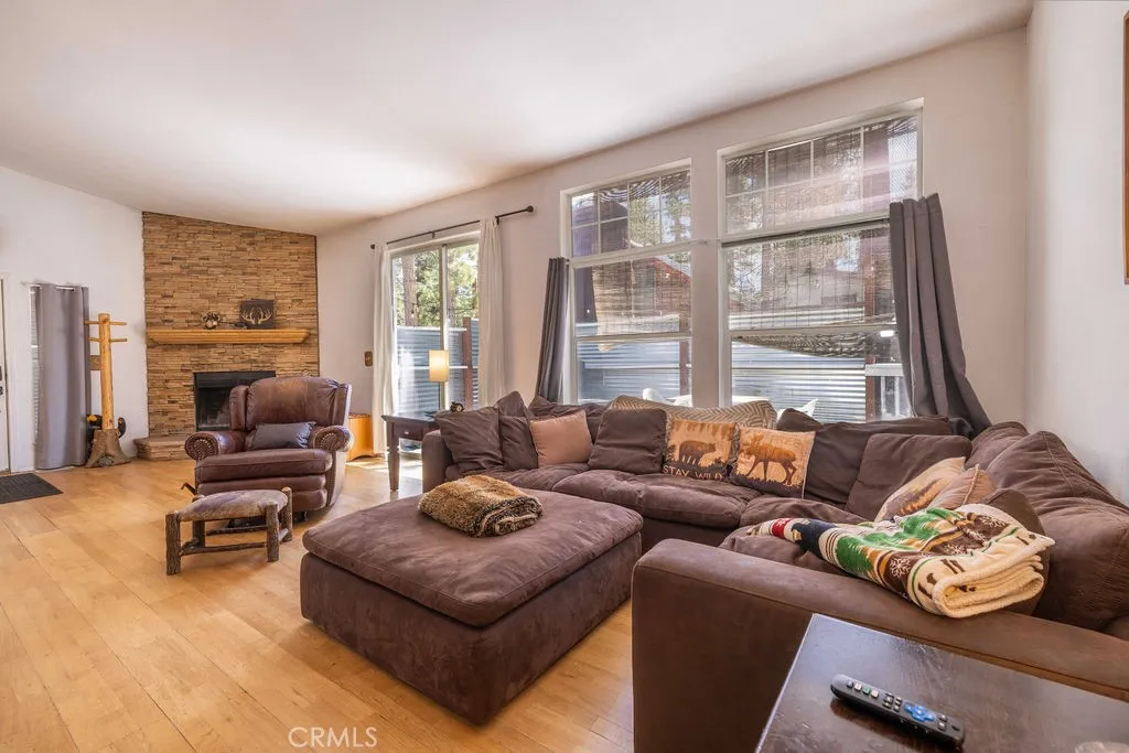 This bright, clean and cozy Big Bear City home has all the creature comforts one would want in a full-time home, mountain getaway, or rental investment! The kitchen features a breakfast bar in the island, lots of prep space, and a cozy dining alcove. In the living room, a warm and inviting fireplace welcomes you to shake off the mountain chill, and vaulted ceilings and dual pane windows through, plus ceiling fans in every bedroom, provides an escape from the summer heat. The fully fenced backyard gives a safe space for pets or kids, and the privacy screened deck provides an intimate space for entertaining or soaking in the hot tub. This neighborhood is unique in that it receives mail and Amazon delivery, as well as trash pick up at this address, compared to many Big Bear Lake neighborhoods that do not receive these convenient services. Located a couple block from national forest hiking trails, and just a short drive to the convention center, sledding area, lake, slopes, and Village, this tastefully furnished home is currently operated as a vacation rental and is turn-key ready to start producing income and making memories!