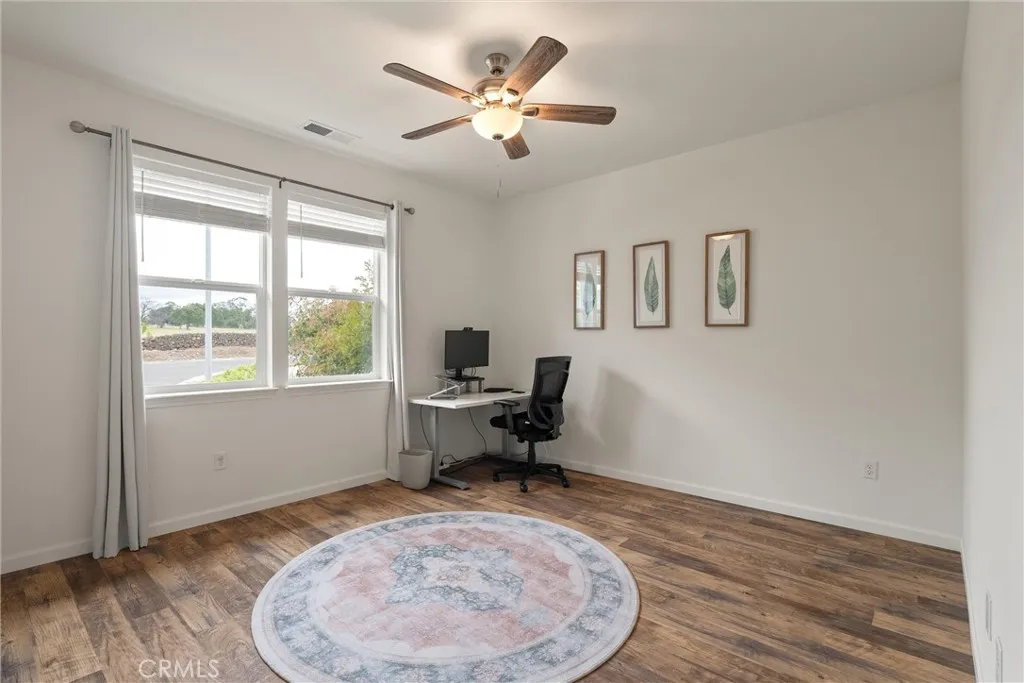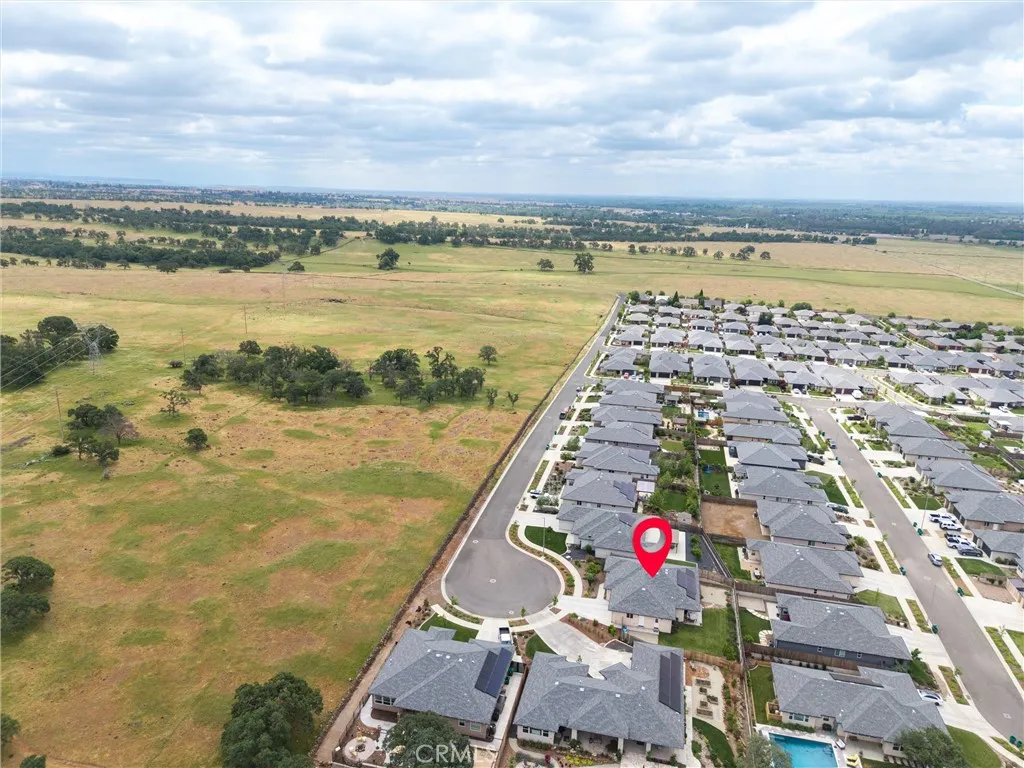 Welcome to this beautiful newer home perfectly situated in a one-of-a-kind Chico location with breathtaking views from both the front and back. Enjoy peaceful surroundings with no front neighborsjust open space and wildlifewhile still being conveniently close to shopping, Meriam Park, and freeway access at the end of a cul-de-sac. Step inside to an open and inviting floor plan connecting the living room, dining area, and kitchenideal for entertaining or everyday comfort. The kitchen features a large island, sleek quartz countertops, rich wood cabinetry, stainless steel appliances, and stylish canned lighting. Tray ceilings and gorgeous wood flooring add elegance throughout the home. This home boasts 3 graciously sized bedrooms and an office. The spacious primary suite offers a large walk-in closet, a large shower and theres an additional walk-in closet in the spare room for plenty of storage. A generous laundry room with a built-in sink adds convenience. Out back, you'll find a large concrete patio perfect for gatherings or relaxing while taking in filtered views of the distant coastal mountain ranges. The good-sized backyard offers both privacy and beauty. Enjoy all the comfort this home has to enjoy without the huge electric bill. This home comes with owned solar to help offset the rising electricity costs and the garage is pre-wired for fast EV charging. Dont miss the opportunity to own this stunning home in a highly desirable, peaceful setting!