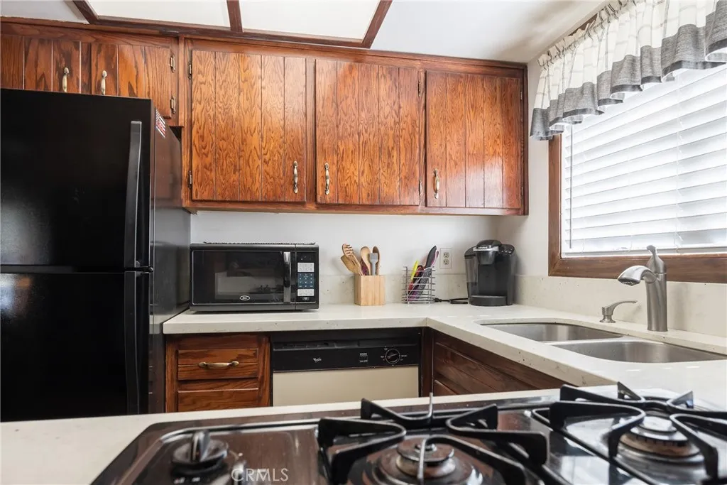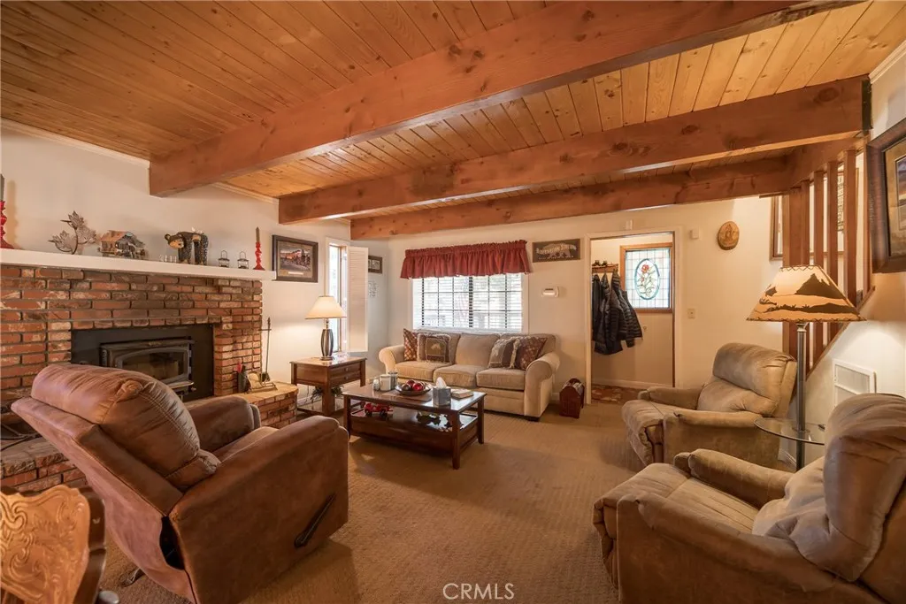The King of the Corner, situated on a level knoll, best describes this Farm Style Home. Extra-large front and rear decks to enjoy the outdoors no matter what time it is. Two Dormers give extra character to the inside and out. Updated kitchen and bath counters, wood pegged flooring in kitchen and dining areas. The beautiful wood slab Breakfast Bar makes a great pass-through to the Dining Area, while French doors take you to the rear deck. The 7560 sq ft lot encompasses the entire corner and provides a complete drive-through with two gates. New forced-air unit. Perlin Beam ceiling in the living and dining area, a used brick fireplace with a wood-burning insert to keep the gas bill down. Downstairs bedroom has an armoire, 2 bright and cheerful bedrooms upstairs with window seat and the most interesting ceiling architecture, no square corners in these rooms, just vaulted and intregging. Fully furnished and ready to go. Storage container can stay with acceptble offer. Extra parking in the rear yard for RV or boat plus vehicles. You will apprceiate the pride of ownership this property displays.