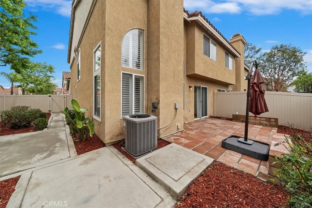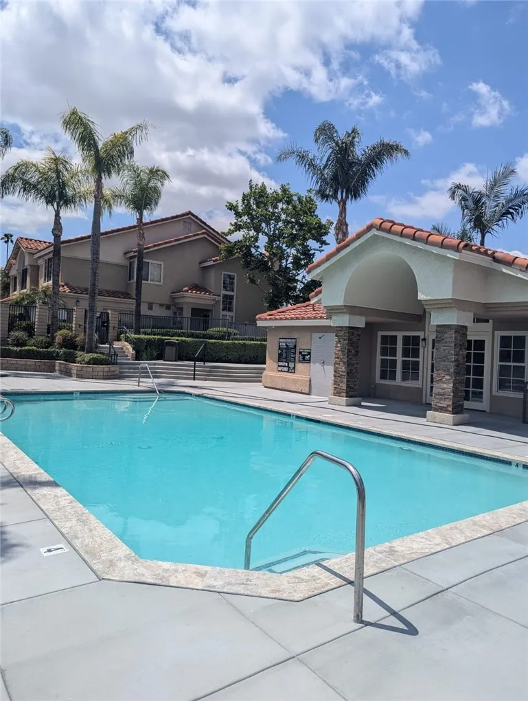BACK ON THE MARKET! Welcome to this beautiful 2-story end-unit condo in the highly sought-after Cortina community! Offering 3 spacious bedrooms and 2.5 baths across 1,385 sq ft, this home features an inviting floor plan with soaring high ceilings and abundant natural light. The kitchen boasts with granite countertops and a cozy eating area, perfect for everyday dining. Enjoy stylish tile flooring downstairs and warm laminate flooring upstairs, along with plantation shutters throughout. Step outside to a nicely sized private patioand enjoy being just steps away from the community pool and spa. A 2-car garage adds convenience, while the central location provides quick access to top-rated schools, shopping centers, and major freeways.