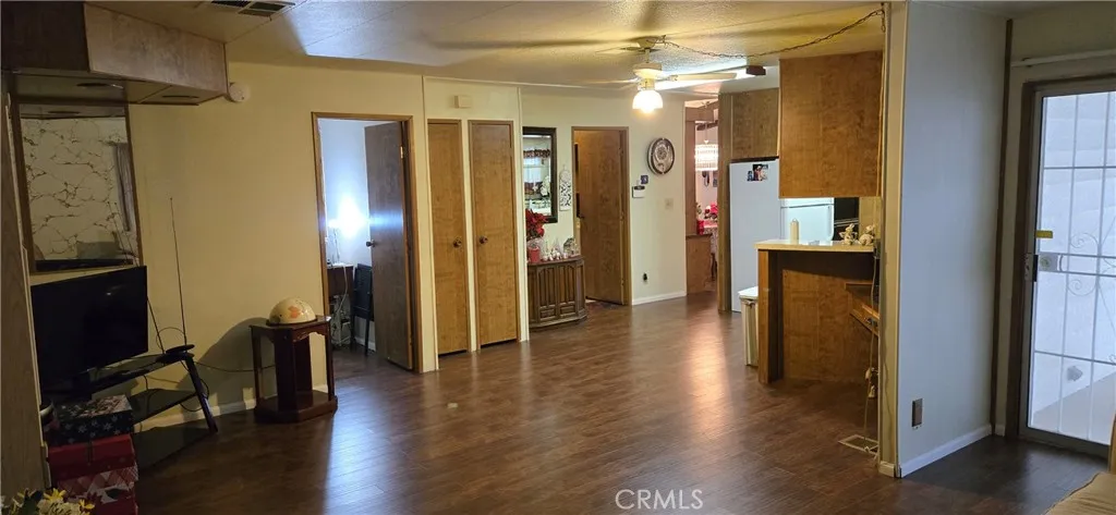 Seller say sell!!! Oh My!! Lowest priced home with these amenities and square footage, YOU OWN THE LAND! in this amazing 55+. With a 9 hole GOLF Course, Pool, Spa, Library, Weight/gym room, Pool tables, Bingo on Tuesdays and more!!! All for a low HOA of only $130.00 per month, WOW!!! This 2 bedroom and 2 full bath home has all the amenities. Separate Living Room, and separate Family Room, Dining area, Master Bedroom suite with walk in closet and retreat. Home has a large storage workshop with plumbing. Hardwood laminate floors throughout. The Kitchen is very spacious with countertop stove, built in double oven, dishwasher and Pantry as well as a built in computer work station. This is an extended home with tandem covered and concreted gated parking. There are a lot of additional amenities here that we can add, but you must see for yourself(s). Did we forget that the association fee is only $130.00 per month and offers a nine hole golf course!!!! with a country club, pool, spa, library, rec rooms, dance and meeting hall, karaoke, pool tables, Foosball, and Private R.V. Storage area, etc. This is a park where you never have to go anywhere. It has it all for recreation. Come see, you will be very happy to see this home and enjoy all the amenities. buyer not performing, subject to cancellation of current escrow.