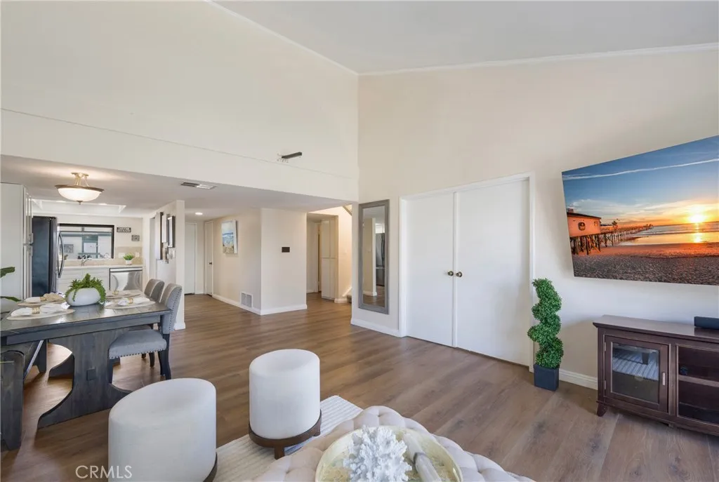 ***Offering special financing with sellers preferred lender.*** Welcome to a lifestyle where privacy, thoughtful design, and convenience align. Located in a gated community in the vibrant heart of Garden Grove, this beautifully renovated condo offers more than just a place to liveits an opportunity to enjoy modern comfort with a touch of sophistication. The main living area begins on the second level, where a wide entry introduces an open-concept layout designed for both everyday living and entertaining. The upgraded kitchen features classic shaker cabinets, quartz countertops with dramatic dark veins, and a shimmering backsplash that catches the light and the eye. The flow from kitchen to dining to living room creates a warm, connected atmosphere. A private balcony expands the living space outdoors, while soaring ceilings and large sliding glass doors flood the area with natural light. This level also offers two well-sized bedrooms, a full bathroom, and a conveniently located laundry area. On the upper level, the primary suite offers a quiet retreat, complete with double closets, generous windows, and an en-suite bathroom. Community amenities include a pool, spa, and poolside shower facilitiesperfect for relaxed weekends or entertaining guests. The condo also includes two assigned carport spaces. This is your chance to own in one of Garden Groves most desirable gated communitieswhere thoughtful renovations and a well-designed layout create a truly inviting home.